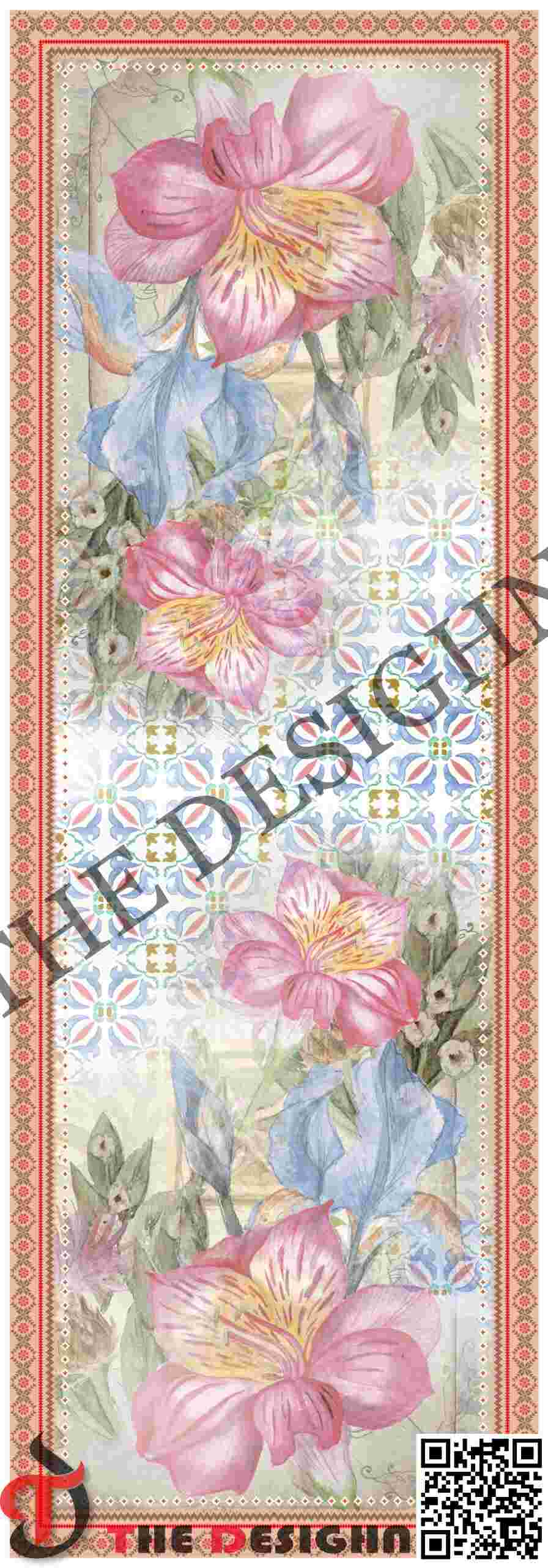 In the STOLE, the geometric tiles maintain a high-density, crystalline saturation to stand out against the soft-focus botanical layers.