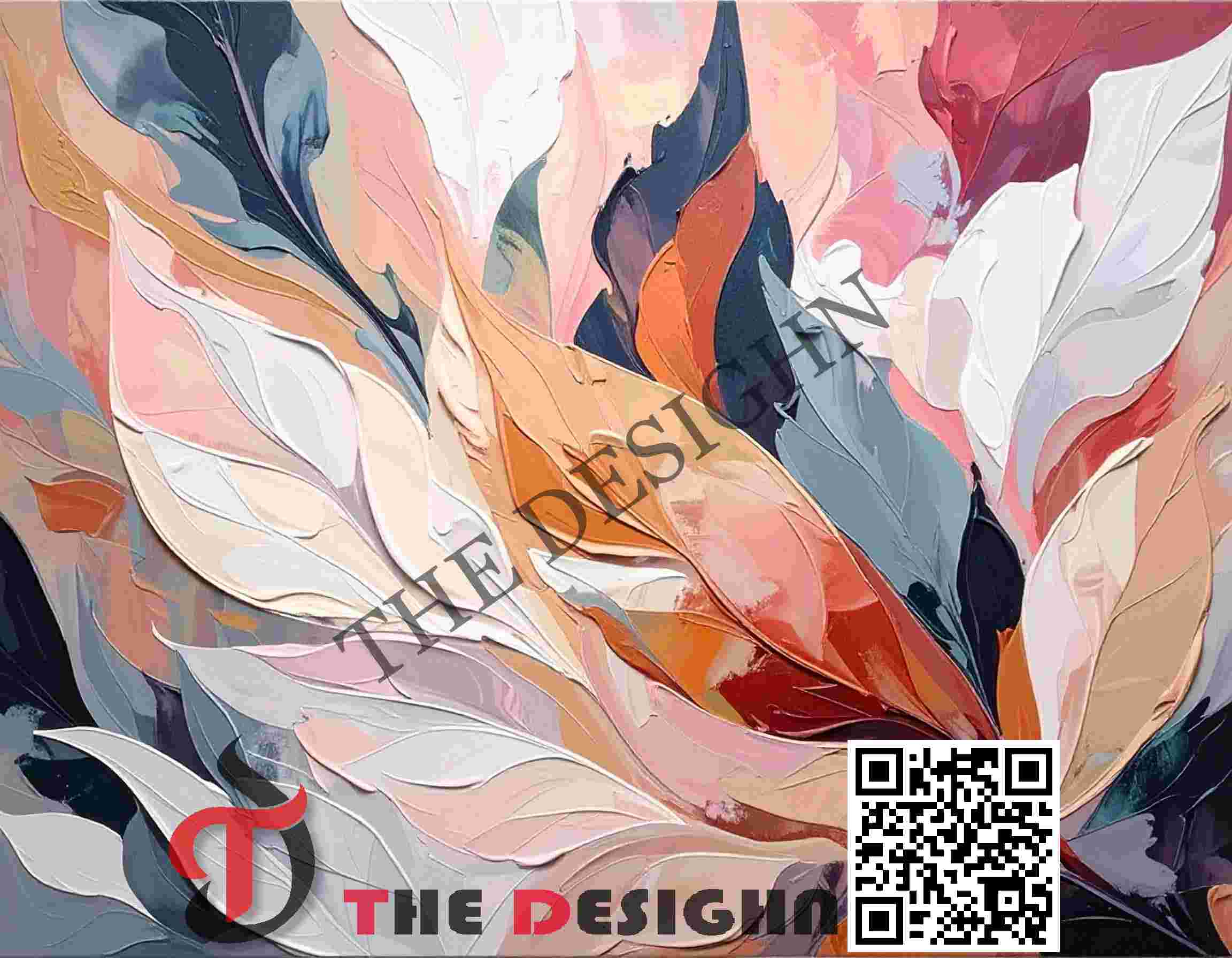 Visual Dispersion (Mottled): The primary amber and white leaves exhibit “Impasto Pigment Mottling.” The color is dispersed in thick, uneven strokes where the pigment “pools” and “peaks,” mimicking the physical texture of paint applied with a palette knife rather than a soft brush.