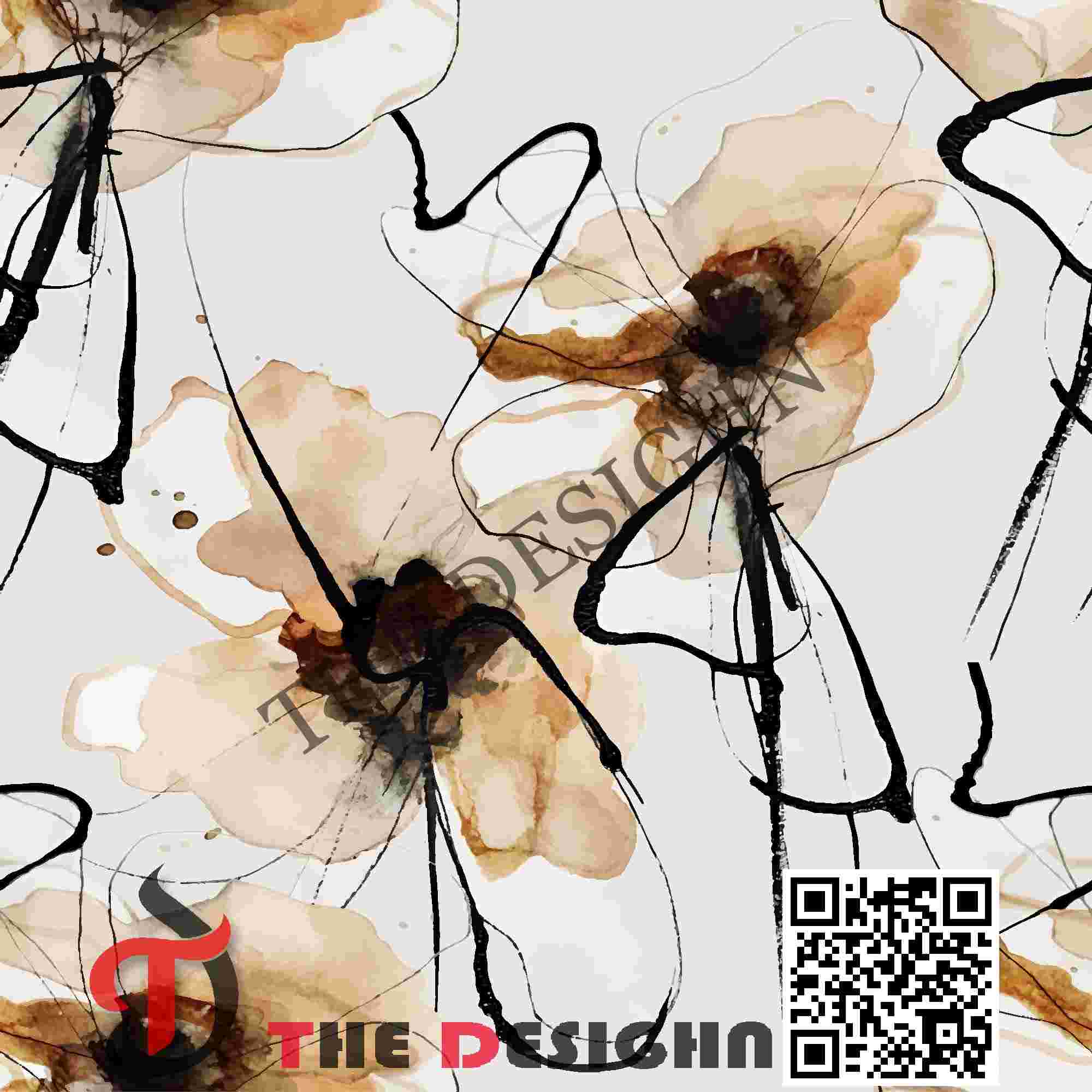 Pigment Dispersion (Fibrillated): The design features “Kinetic Line-Work Fibrillation”. Saturated black pigments are dispersed in dense, “impact zones” (the floral hearts), immediately surrounded by fine, “dragged” lines that mimic the texture of a rapid brush-stroke or capillary ink travel.