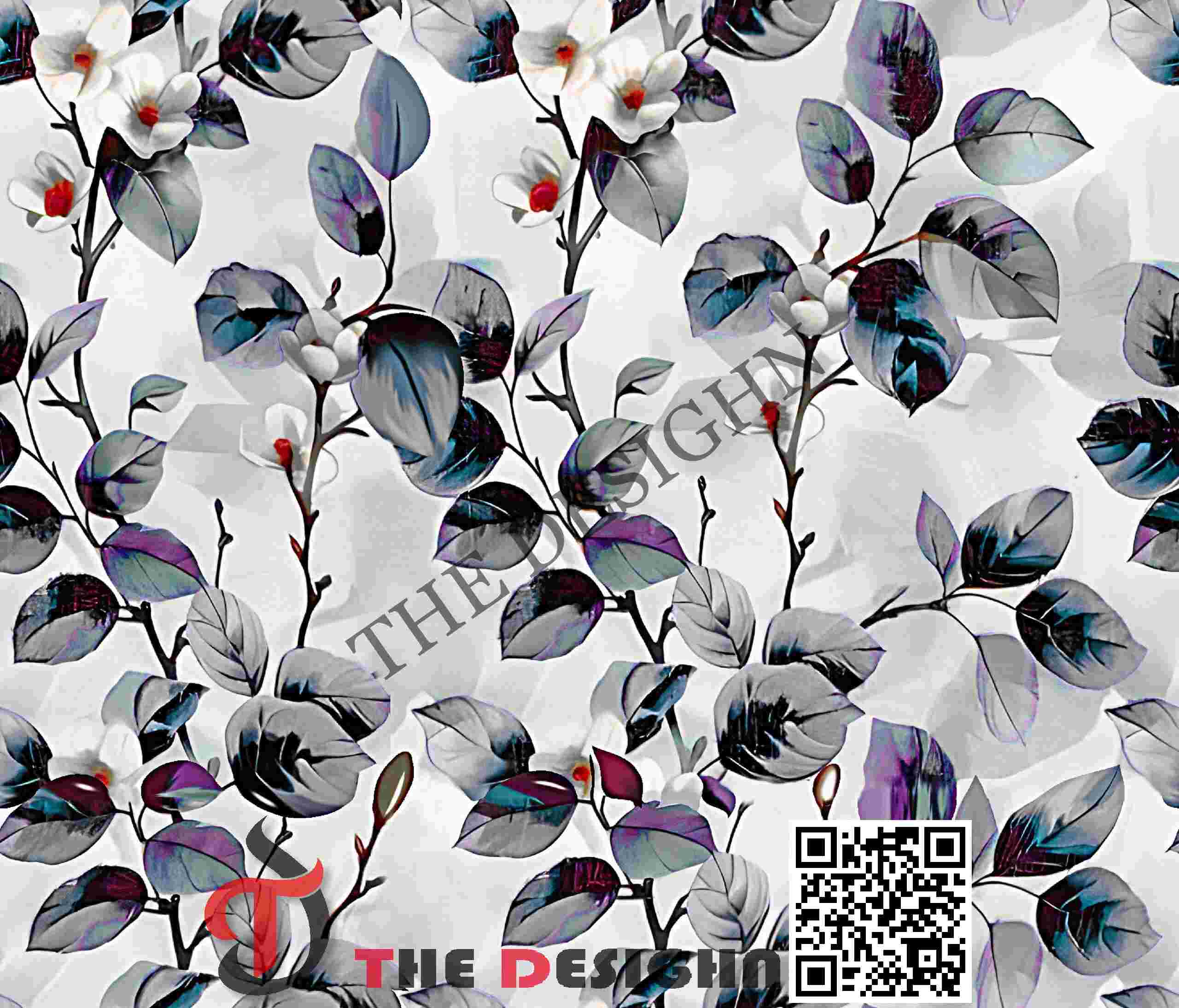 Edge Dispersion (Sharp-to-Defined): The boundaries of the main forms feature “Crisp Structural Dispersion”. Every leaf and branch maintains a sharp, distinct edge, providing a clear foreground-background hierarchy essential for maintaining pattern legibility across fabric drapes.