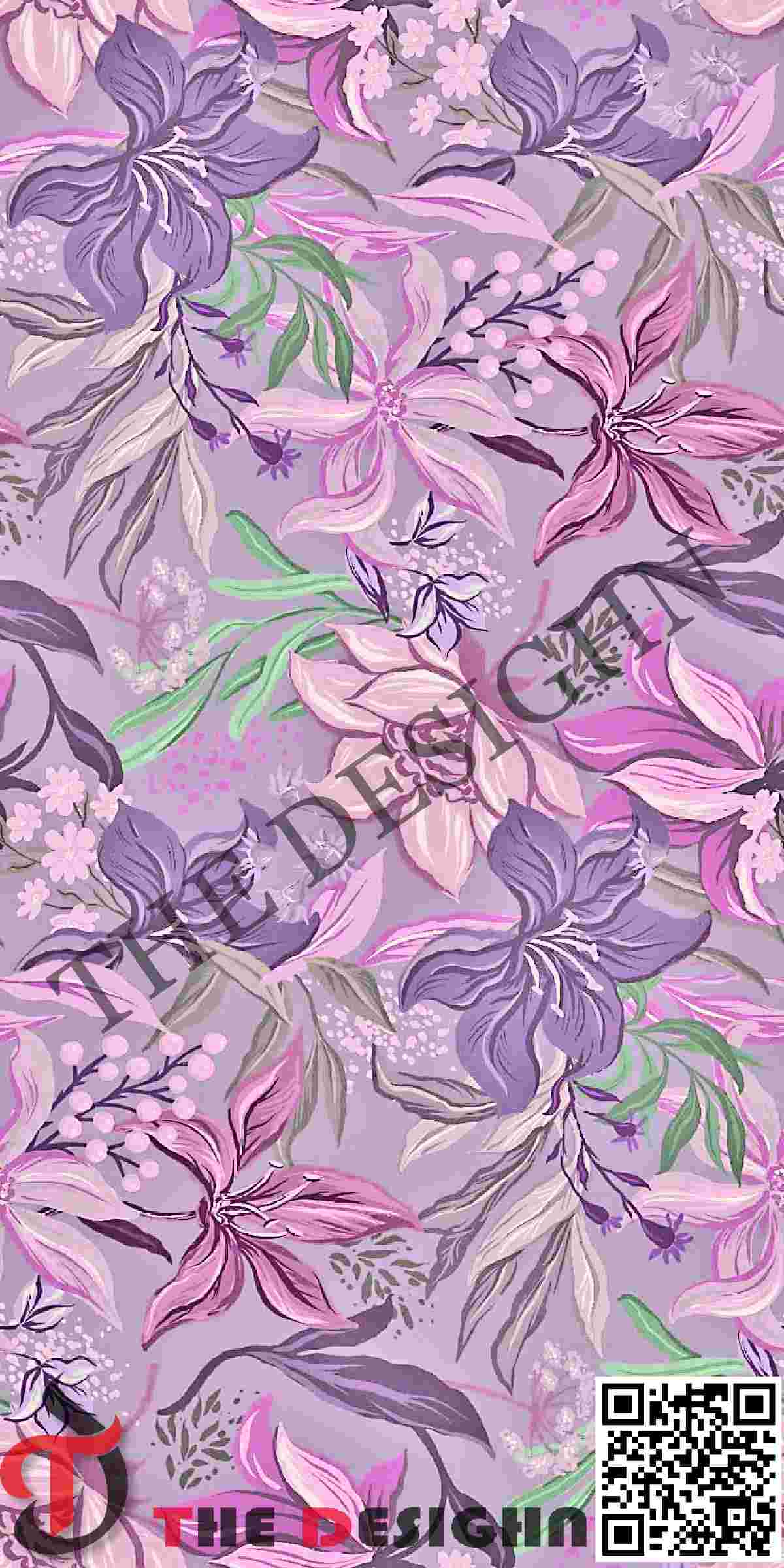 • Palette: Vibrant Jewel Tones: Saturated Amethyst, Orchid Pink, Muted Lavender, and Lime Sage, set against a solid, light-violet field.
