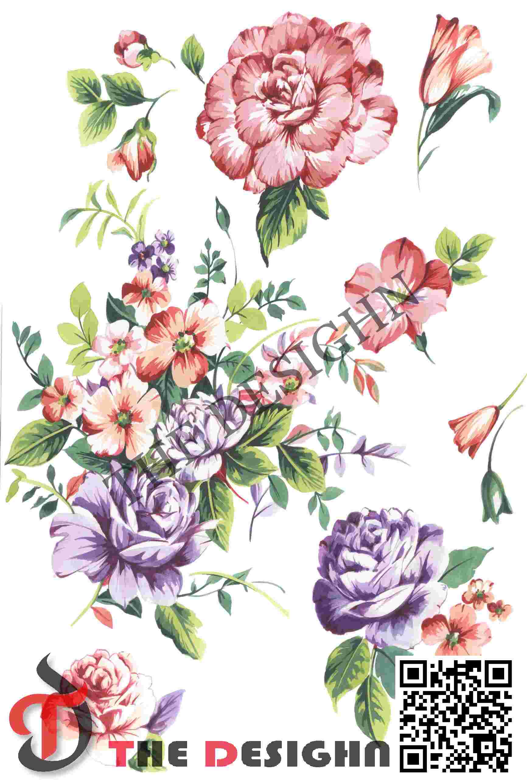 Pigment Dispersion (Zonal): The design features “Viscous Zonal Graduation.” Dispersion is strictly organized by the “radial” structure of the blooms. The color moves from high-density, opaque purple or pink centers to light, vaporous “washed” tints at the petal tips, mimicking the natural movement of liquid pigments meeting a drying mineral surface.