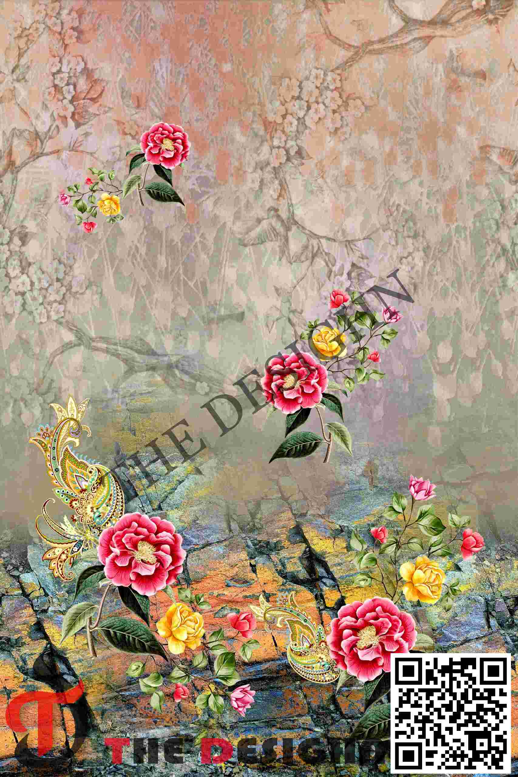Edge Dispersion (Fractured-to-Crisp): The boundaries of the main forms feature a “Dual-Action Transition”. While the foreground camellia petals maintain high-fidelity, crisp margins, the background “ghosted” branch clusters and the transition between the oxidizing bedrock and the stone field are dispersed with highly porous, feathered edges.