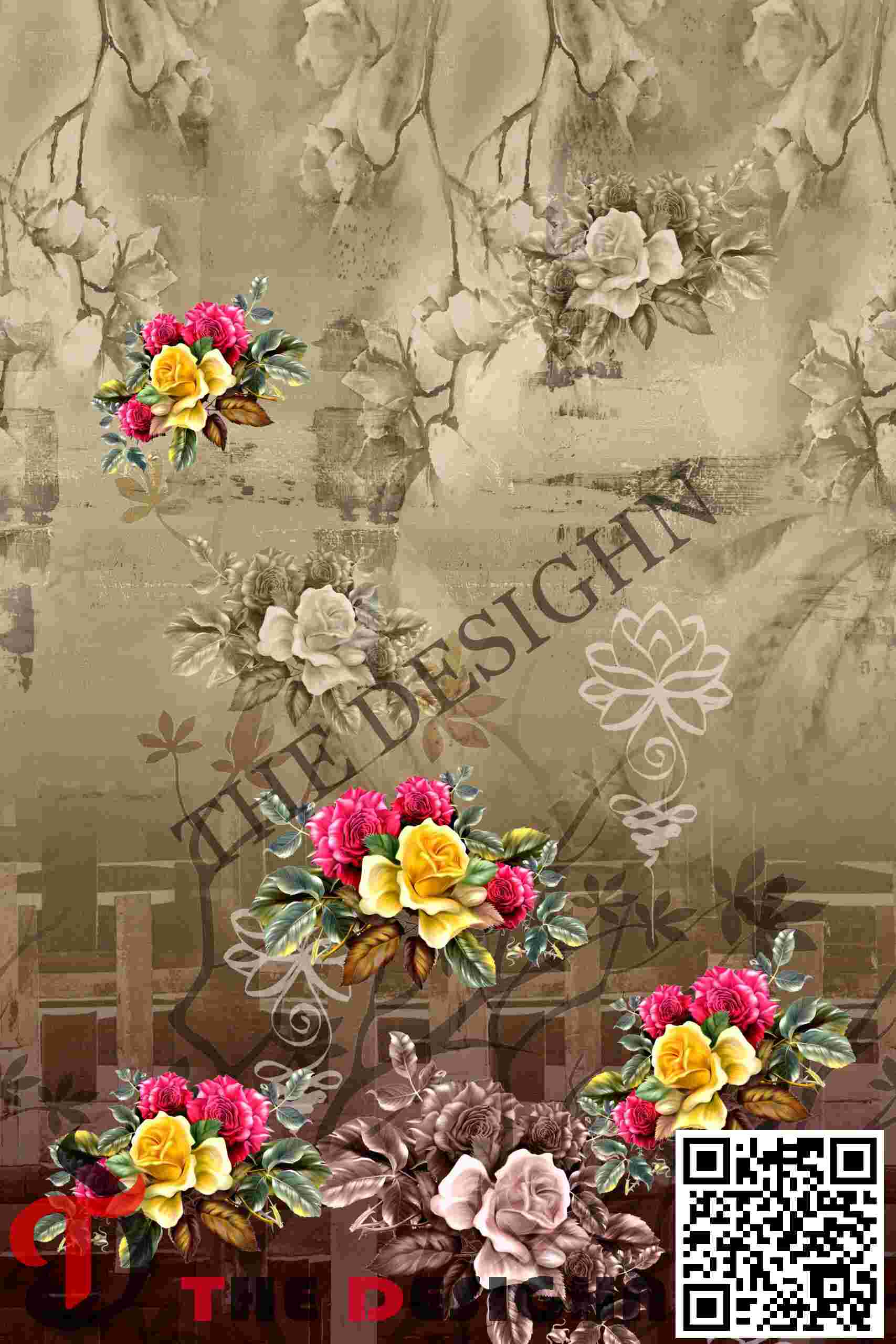 • Palette: Muted Earth & High-Vibrancy Primary Tones: A dominant background field of Bronze, Ochre, and Sandy-Taupe, balanced by intense Magenta and Yellow floral clusters with “ghosted” sepia-toned blossoms.