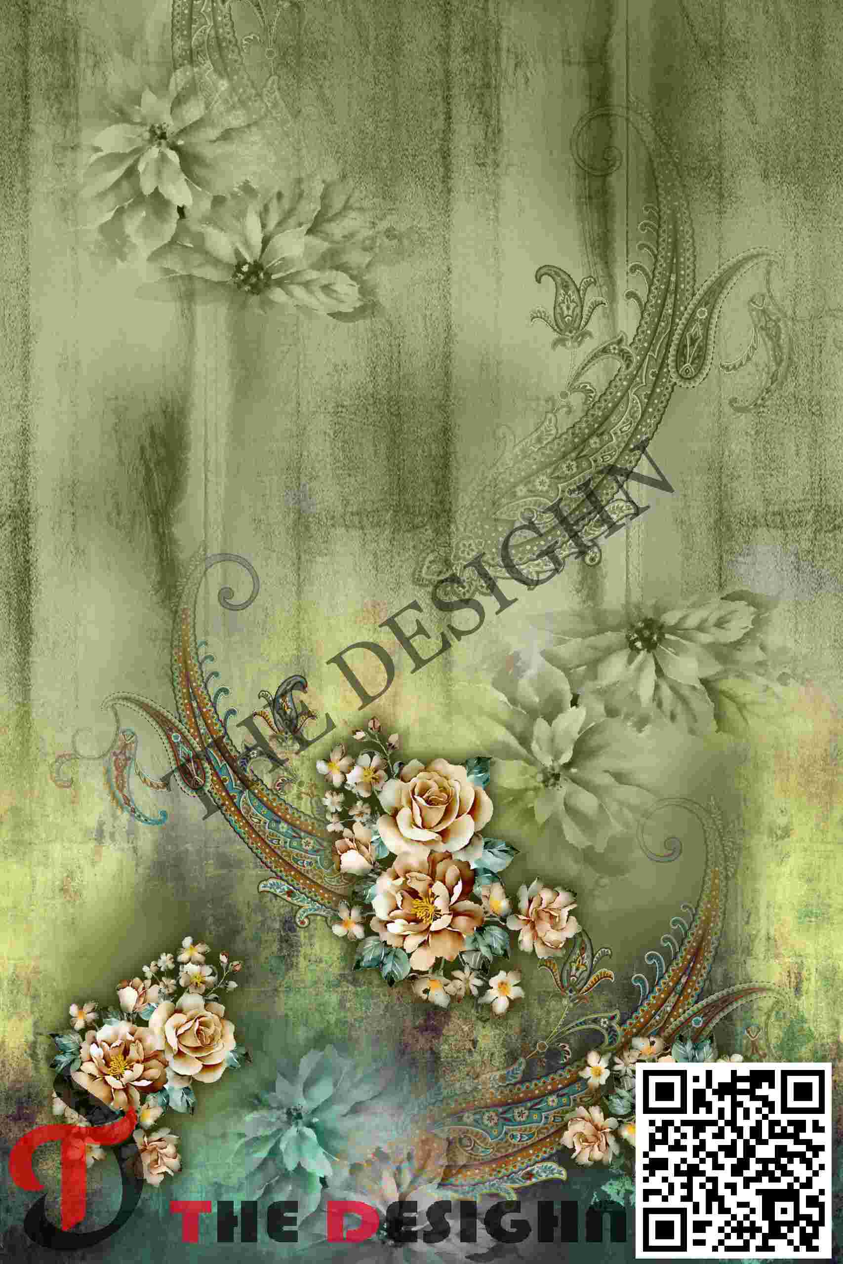 Edge Dispersion (Fractured-to-Crisp): The boundaries of the main forms feature a “Dual-Action Transition”. While the foreground rose petals maintain high-fidelity, crisp margins, the background paisley silhouettes and the internal “ghosted” flowers are dispersed with highly porous, feathered edges, ensuring the movement feels both spontaneous and grounded in a material structure.