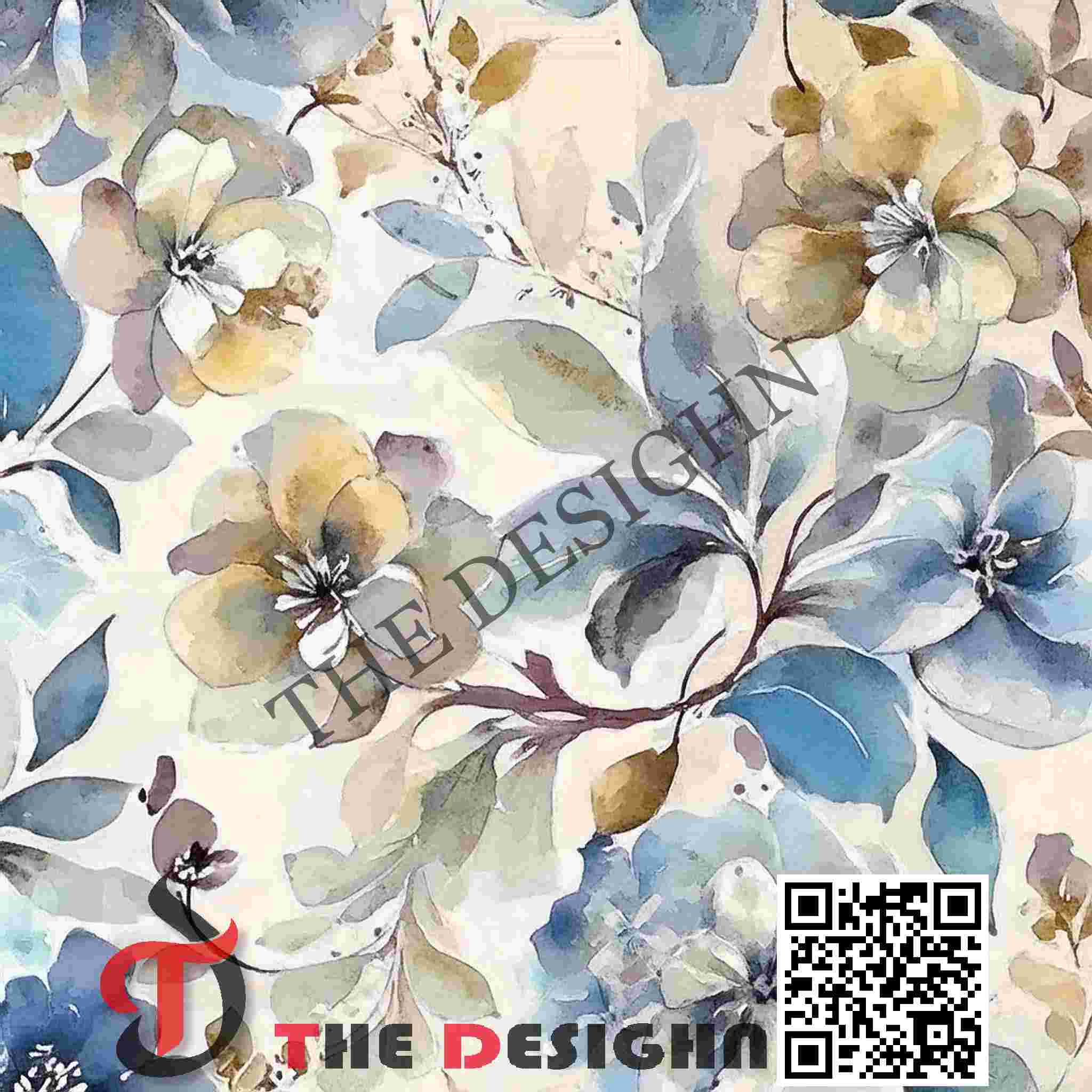 Edge Dispersion (Blur-to-Crisp): The boundaries of the main forms feature “Fractured Fluid Dispersion”. There is a high-contrast transition between the crisp, dry-brushed line-work of the stems and the blurred, “vibrating” edges of the floral washes, ensuring the movement feels spontaneous and multi-dimensional.