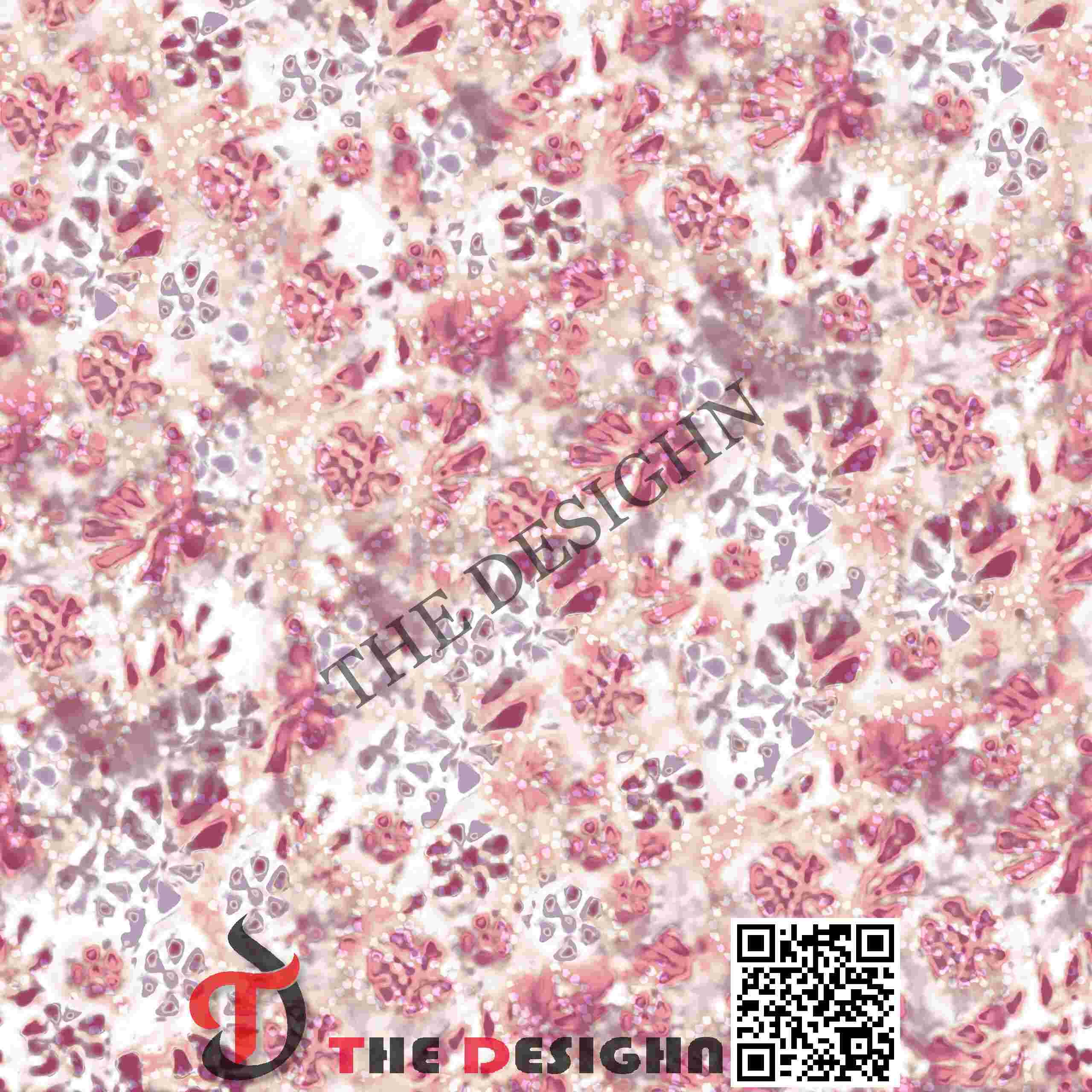 Pigment Dispersion (Zonal): The design features “Isolated Zonal Saturation”. Saturated plum pigments are dispersed in dense, pointillist clusters within the floral hearts, immediately surrounded by a “halo” of lighter blush as the pigment travels toward the white margins.