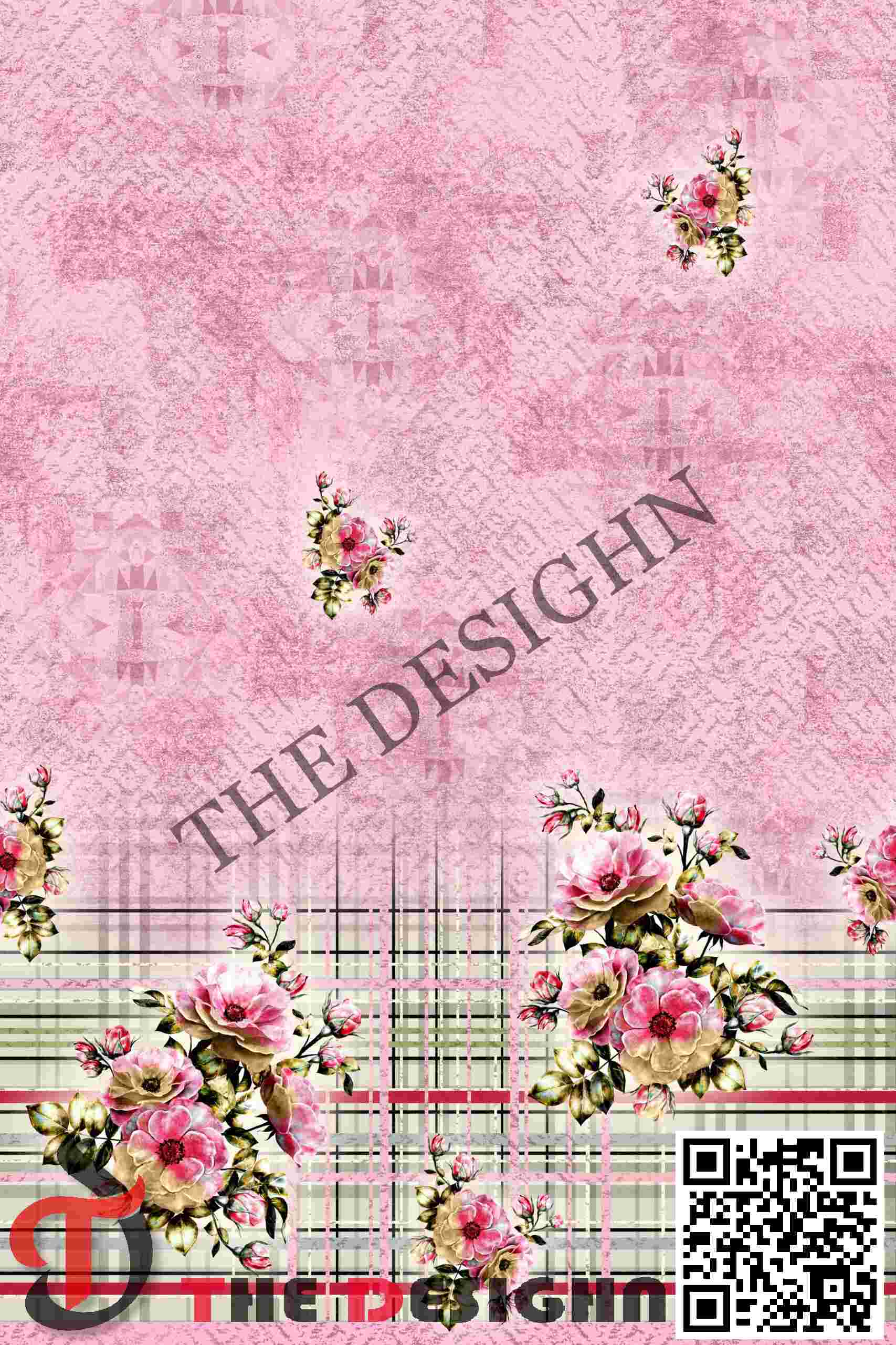 Edge Dispersion (Fractured-to-Crisp): The boundaries of the main forms feature a “Dual-Action Transition”. While the rose bouquets and the main plaid lines maintain high-fidelity, crisp margins, the background textures and tribal-inspired motifs within the pink field are dispersed with porous, weathered edges, ensuring the movement feels both spontaneous and grounded in a physical material.