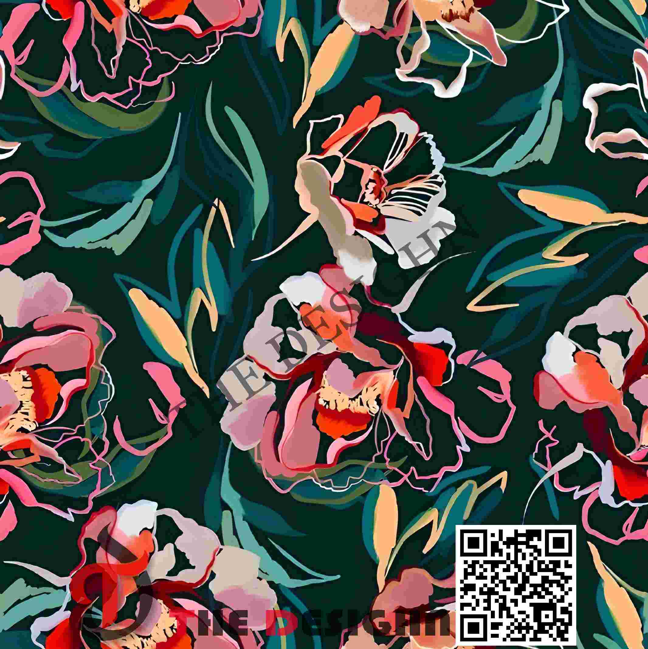 Edge Dispersion (Sharp-to-Defined): The boundaries of the forms feature a “Defined Transition.” While the background utilizes a soft, “wet-on-wet” dispersion to create atmospheric depth, the primary floral specimens maintain a sharp, graphic dispersion (the “etched” look) to define their architectural shape, ensuring the motifs feel hand-rendered rather than mechanically stamped.