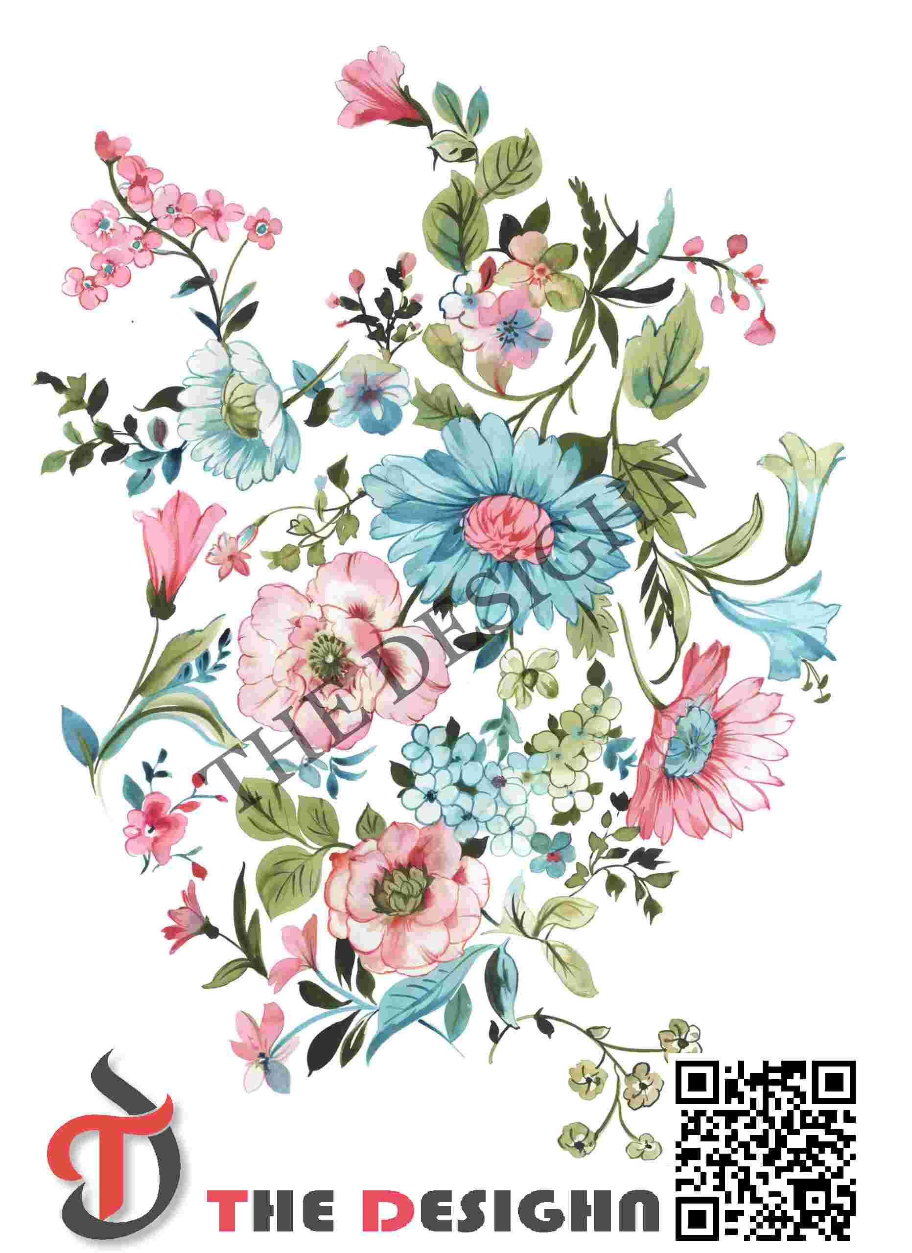 • Pigment Dispersion (Zonal): The design features “Viscous Zonal Graduation.” Dispersion is strictly organized by the “radial” structure of the blooms. The color moves from high-density, opaque blue or pink centers to light, vaporous “washed” ivory and sky-blue tints at the petal tips, mimicking the natural movement of liquid pigments meeting a drying mineral surface.