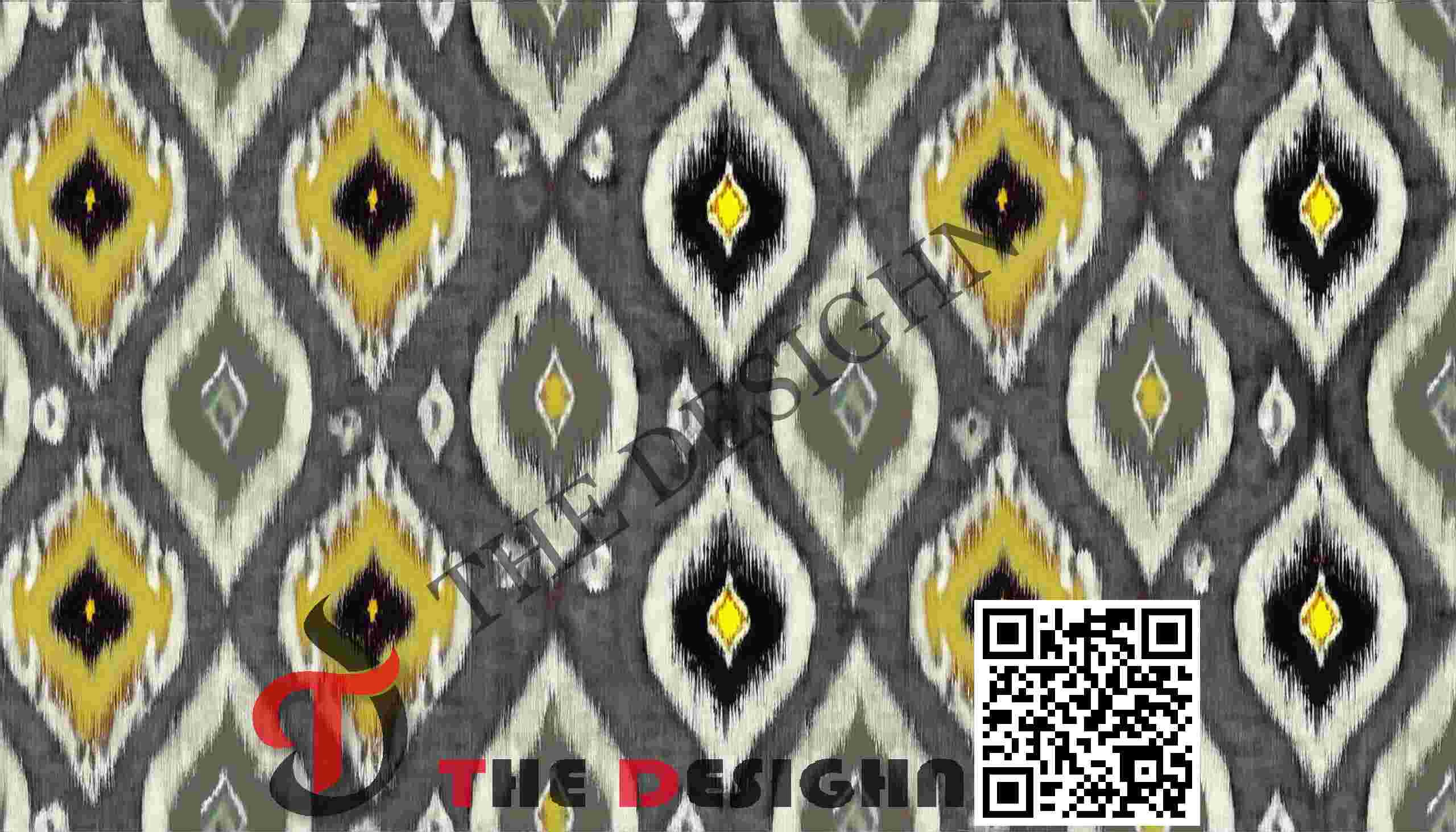 Visual Dispersion (Vaporous): The primary citron and charcoal color zones exhibit “Vaporous Tonal Bleeding”. The pigments are dispersed in soft, feather-edged “currents” that suggest a high-dilution watercolor technique, providing a sense of immense soft-focus depth that mimics the natural bleed of hand-dyed Ikat fibers.