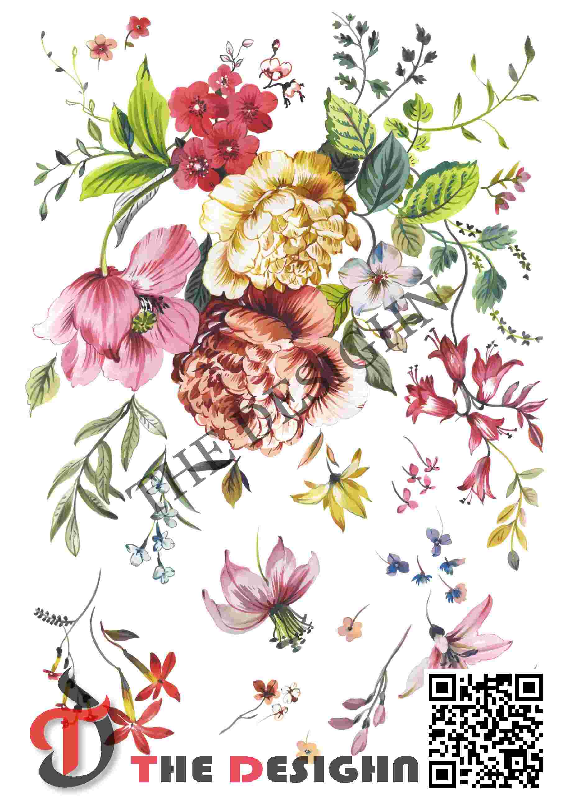 • Pigment Dispersion (Zonal): The design features “Viscous Zonal Graduation.” Dispersion is strictly organized by the “radial” structure of the blooms. The color moves from high-density, opaque crimson or yellow centers to light, vaporous “washed” ivory and pink tints at the petal tips, mimicking the natural movement of liquid pigments meeting a drying mineral surface.