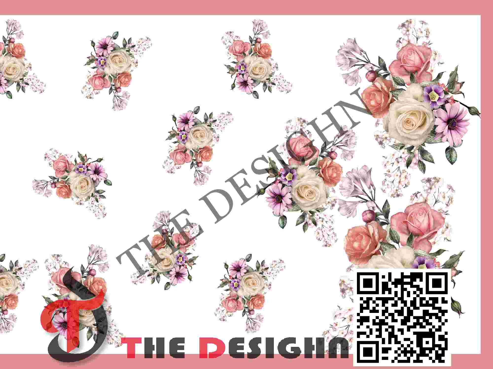 Visual Dispersion (Scattered): The design exhibits “Rhythmic Bouquet Dispersion”. Rather than a continuous field, the focal points are dispersed as distinct, varying-sized islands across the white canvas, providing a sense of breathable, curated movement.