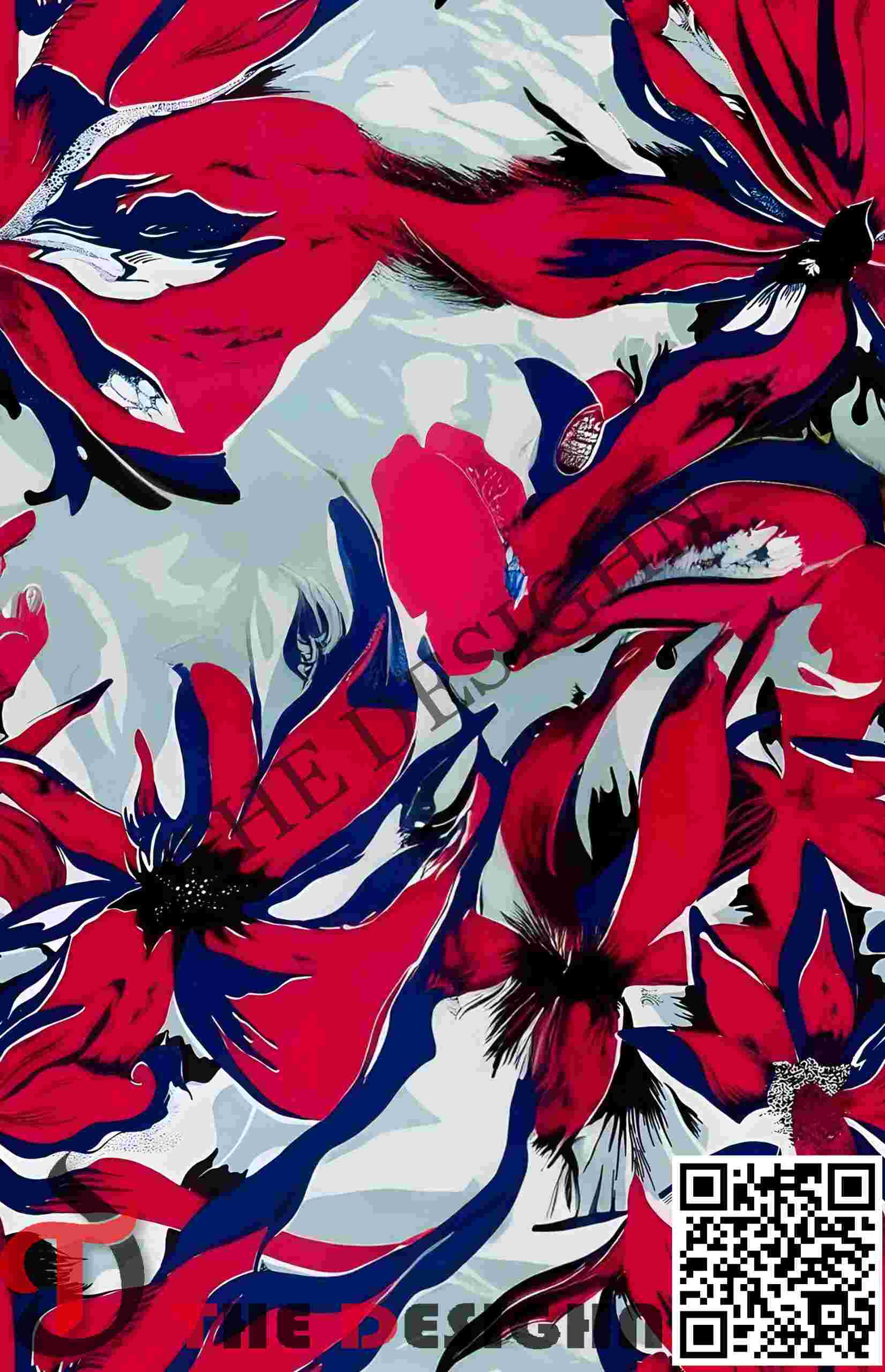 Pigment Dispersion (Zonal): The design features “Pressure-Point Stroke Graduation.” Dispersion is strictly organized by “kinetic velocity.” The color exists in a state of high-density saturation within the floral cores and dark-ink “ribs,” immediately transitioning to a “scumbled” lower density at the trailing edges where the brush or digital tool lifts, mimicking the physical properties of heavy pigments meeting a textured substrate.
