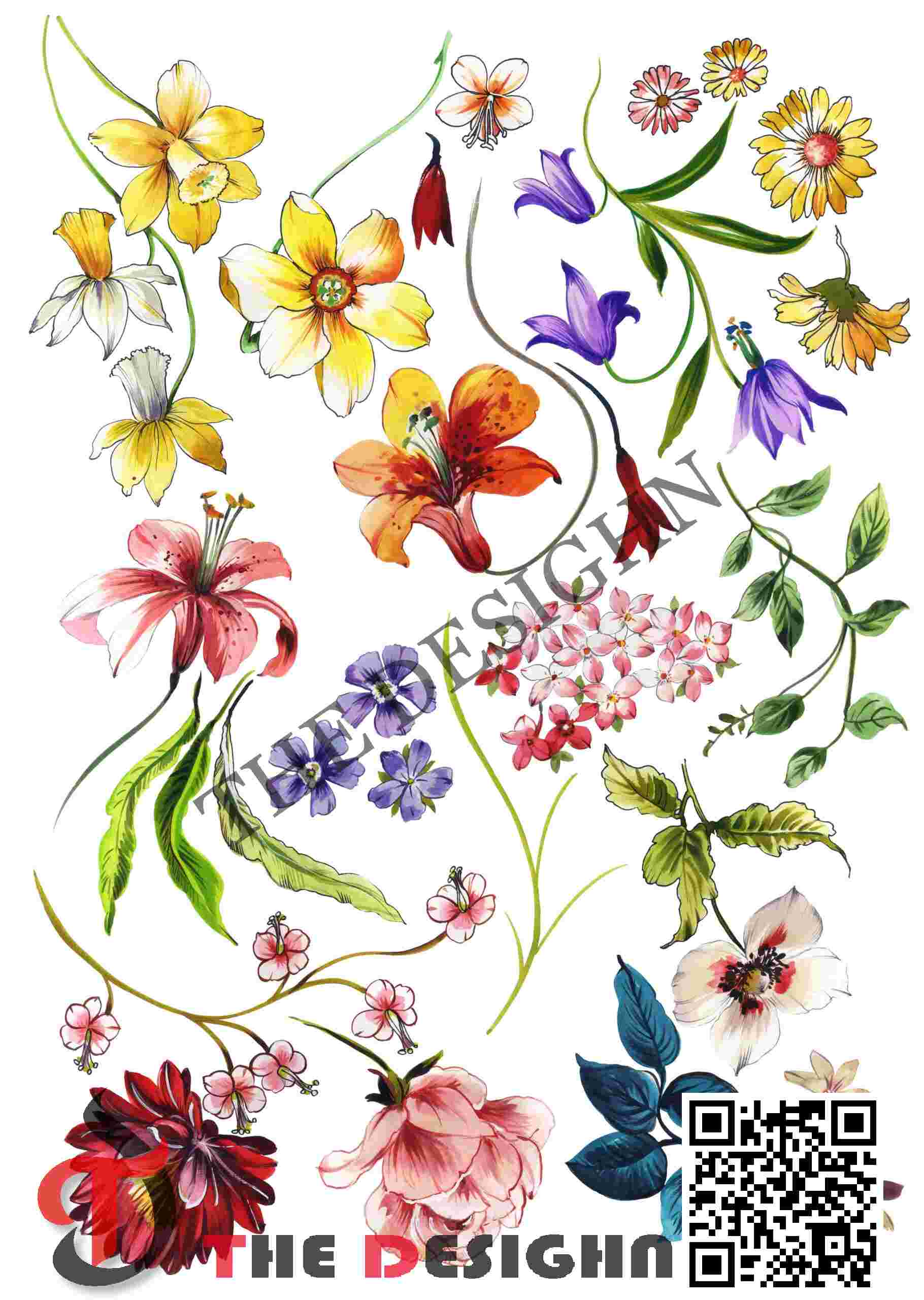 Pigment Dispersion (Zonal): The design features “Viscous Zonal Graduation.” Dispersion is strictly organized by the “radial” structure of the petals. The color exists in a state of high-density saturation at the base of the blooms, immediately transitioning to a lower density and higher transparency at the edges, mimicking the natural movement of liquid pigments meeting a drying mineral surface.