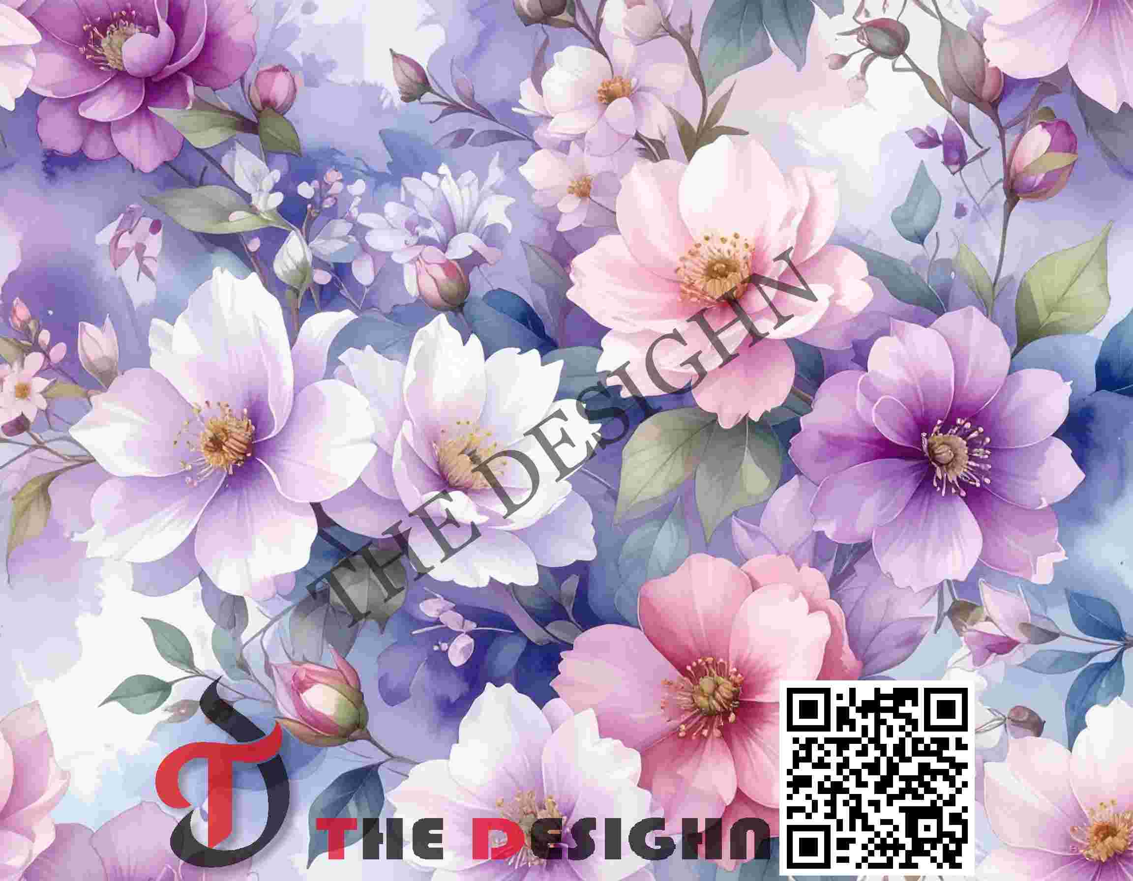 Visual Dispersion (Blending): The petals display “Soft-Edge Dispersion.” The colors within the flowers (e.g., the pink center fading to white tips) blend smoothly, mimicking the way watercolor pigment spreads on wet paper. There are no hard boundaries between the color zones.