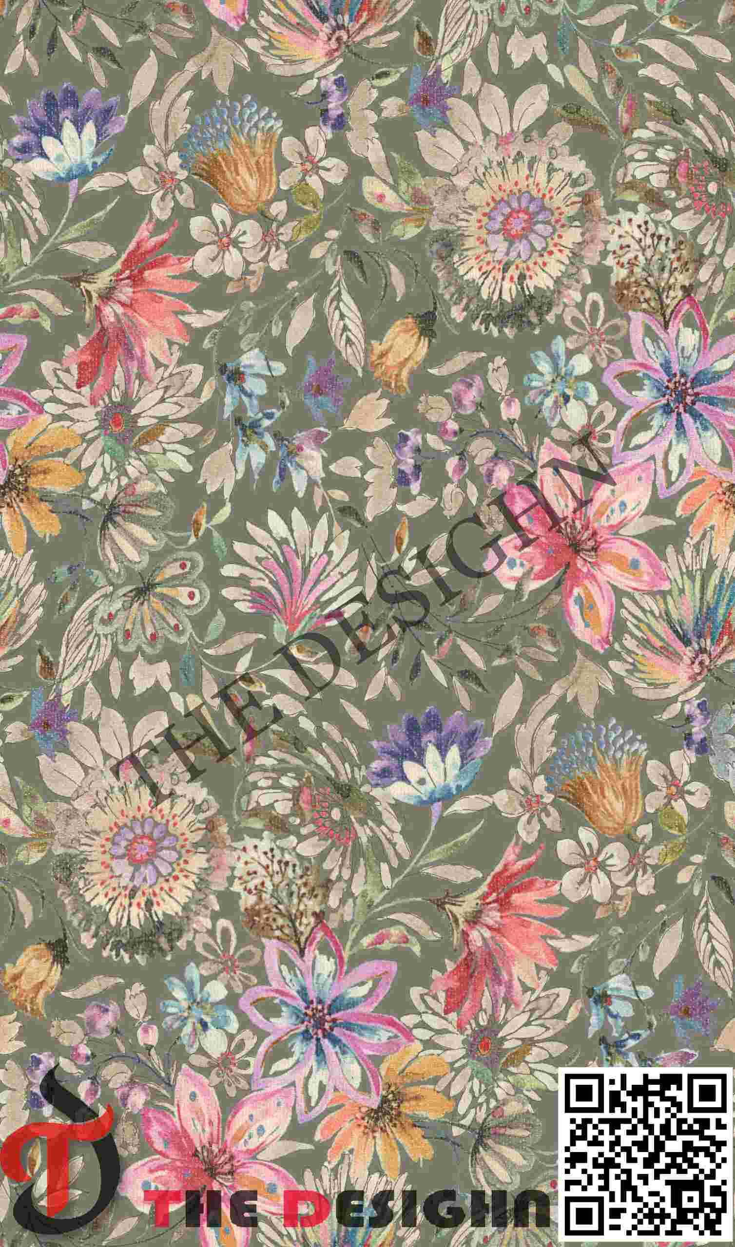 Pigment Dispersion (Zonal): The design features “Radiant Tonal Graduation.” Within the coral and yellow flowers, the color is dispersed in varying “densities”—moving from high-saturation centers to light, vaporous “washed out” edges—mimicking the natural fade of an antique hand-printed textile.