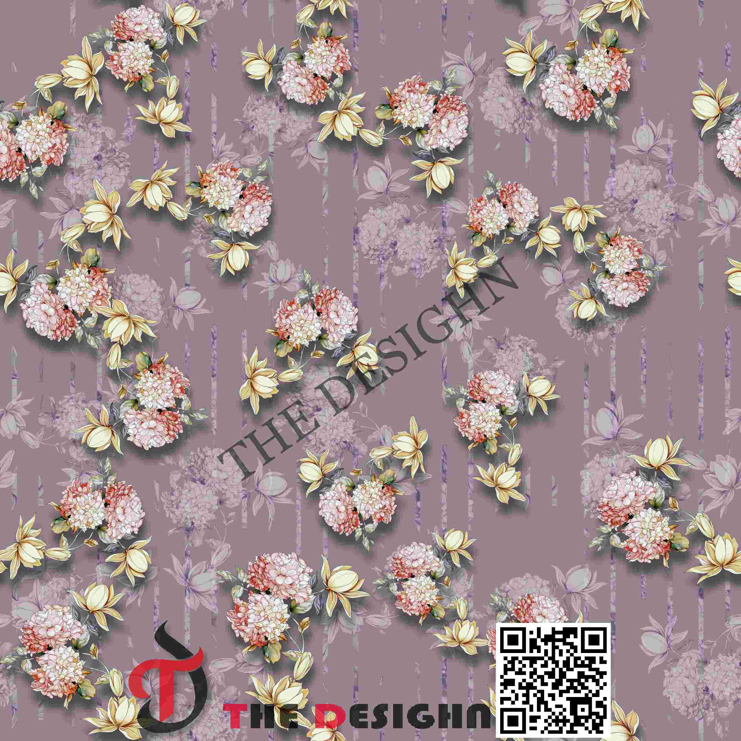 Pigment Dispersion (Shadow): The design features “Shadow-Focus Depth Projection.” Soft, darkened “drop shadows” are dispersed beneath the main floral clusters. This dispersion of darker pigment creates a 3D effect, making the bouquets appear to float significantly above the striped orchid background.