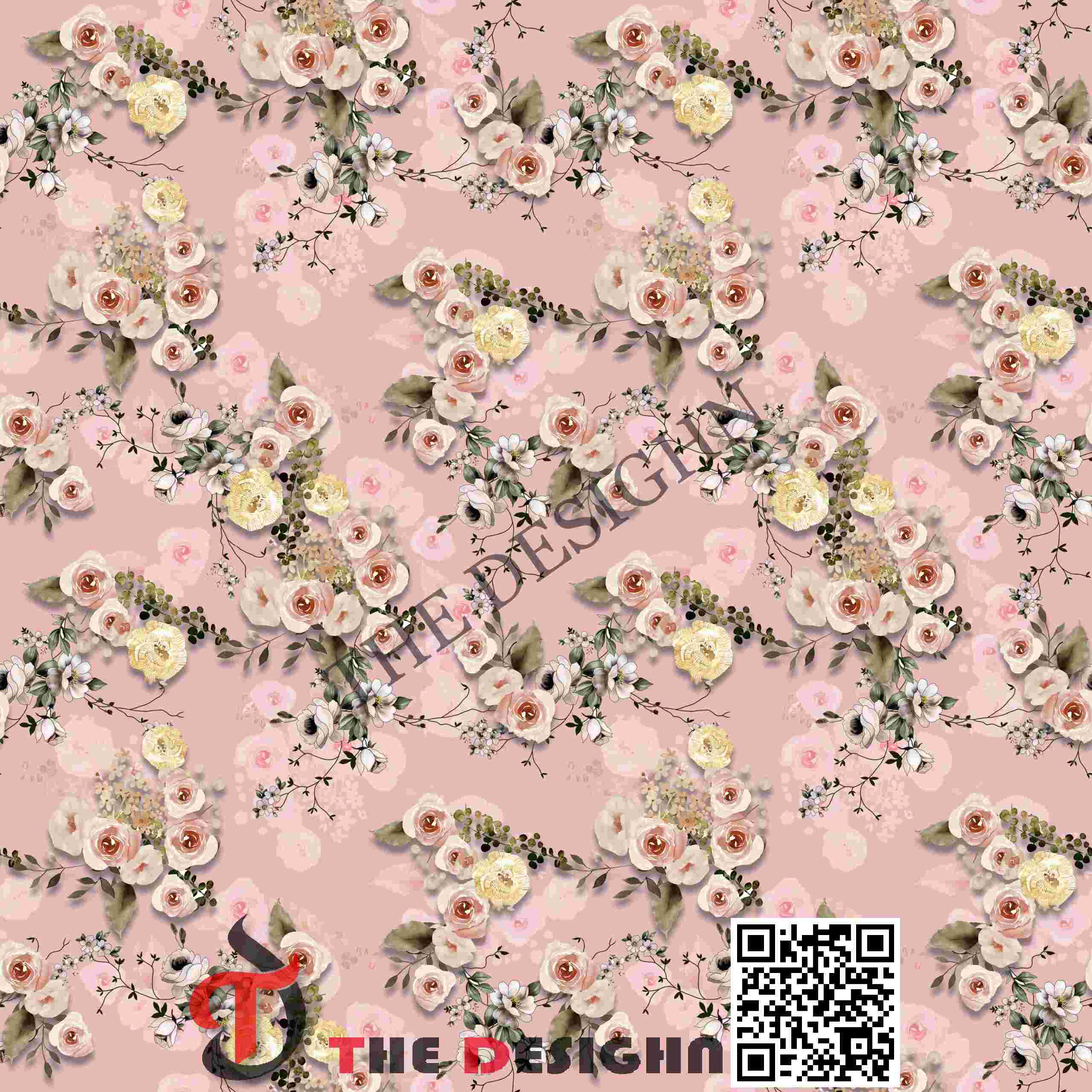 Pigment Dispersion (Shadow): The design features “Shadow-Focus Depth Projection.” Soft, darkened “drop shadows” are dispersed beneath the main floral clusters. This dispersion of darker pigment creates a 3D effect, making the bouquets appear to float significantly above the pink background.