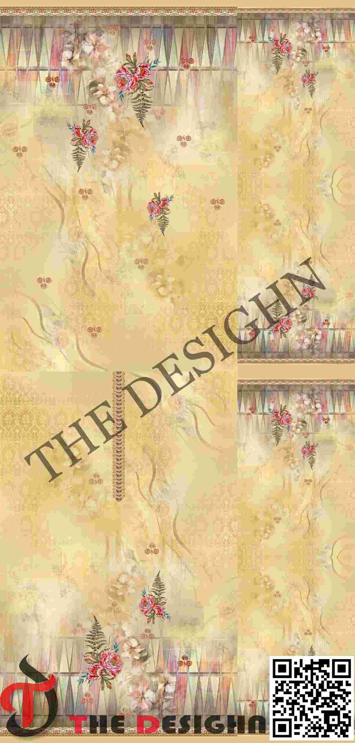 Geometric Transitions: The top and bottom “Daman” areas utilize a sharp chevron/triangle gradient. These geometric peaks provide a modern, architectural frame for the organic floral elements and create a dynamic visual transition between the borders and the main body.