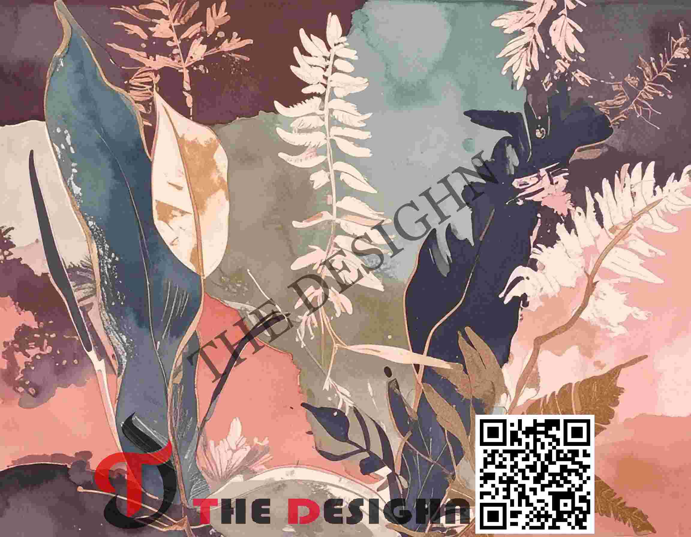 • Technical Effect: If printed, this would likely use a “Resist” technique or “Foil Stamping.” The gold ink (or foil) does not disperse or soak into the paper/fabric; it sits on top, maintaining a perfect, crisp edge that contrasts with the soaking, bleeding watercolor underneath.
