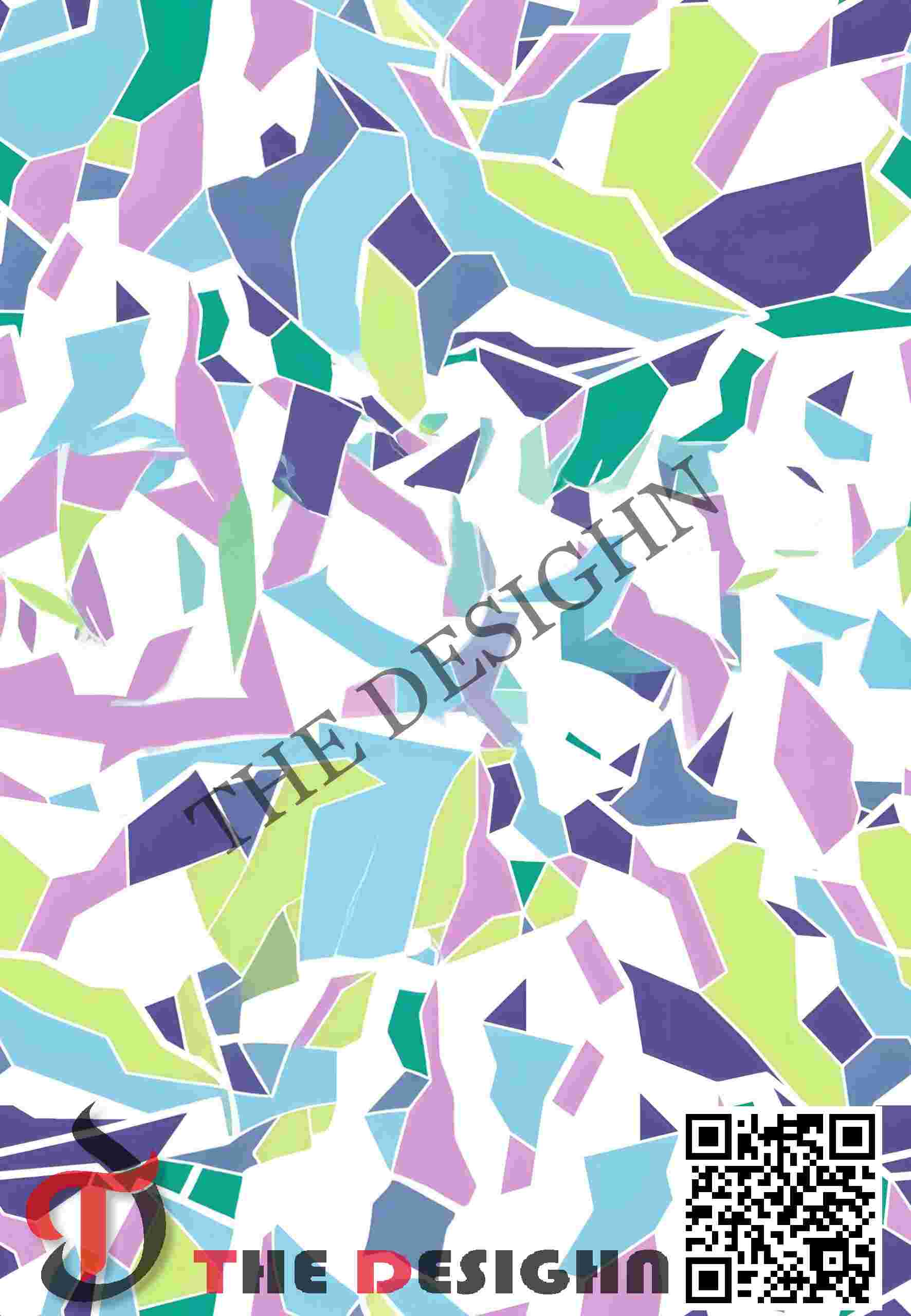 Pigment Dispersion (Zonal): The design features “Zero-Graduation Zonal Fills.” Dispersion is strictly organized by “geometric containment.” The color exists in a state of maximum saturation from edge to edge within each shard, immediately transitioning to zero-saturation at the crisp, white boundaries, creating a high-contrast, “vibrating” edge effect.
