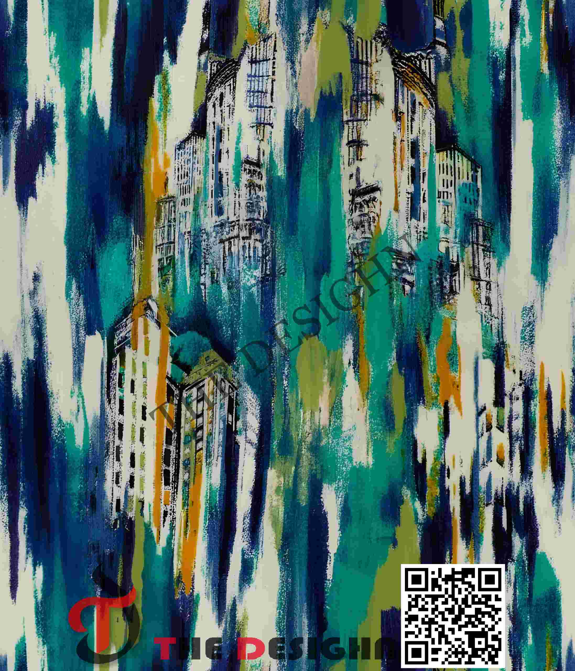 Edge Dispersion (Frayed-to-Sharp): The boundaries of the forms feature a “Defined Transition.” While the primary architectural “skeletons” maintain a sharp path to define the structure, the surrounding “rain” of color utilizes a frayed, “dry-brush” dispersion that ensures the motifs feel hand-rendered rather than digitally generated.