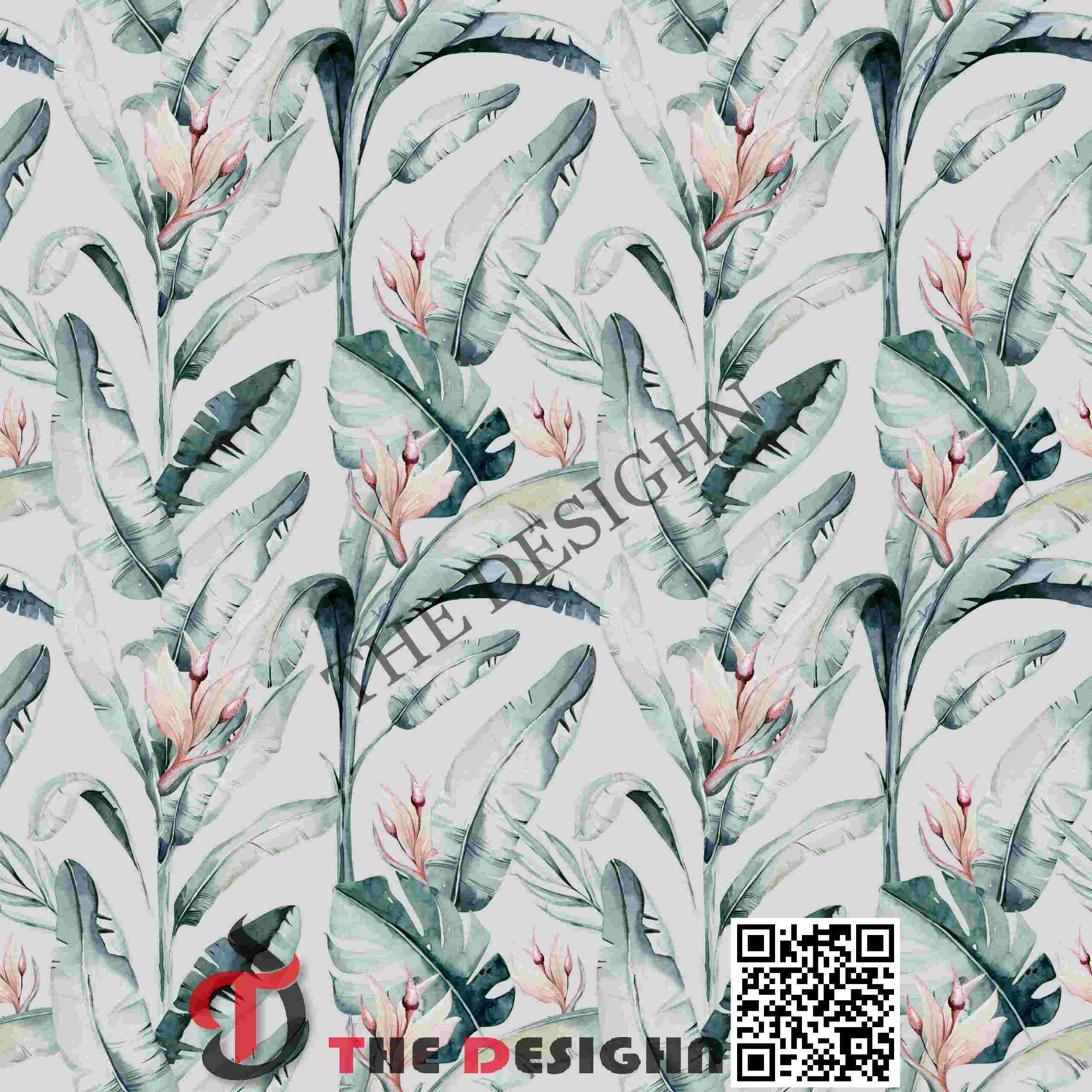 Visual Dispersion (Mottled): The primary leaf forms exhibit “Internal Wash Mottling.” The color is dispersed in soft, uneven clusters within the leaves, suggesting a “dry-on-wet” watercolor technique that mimics the natural, variegated texture of tropical foliage.