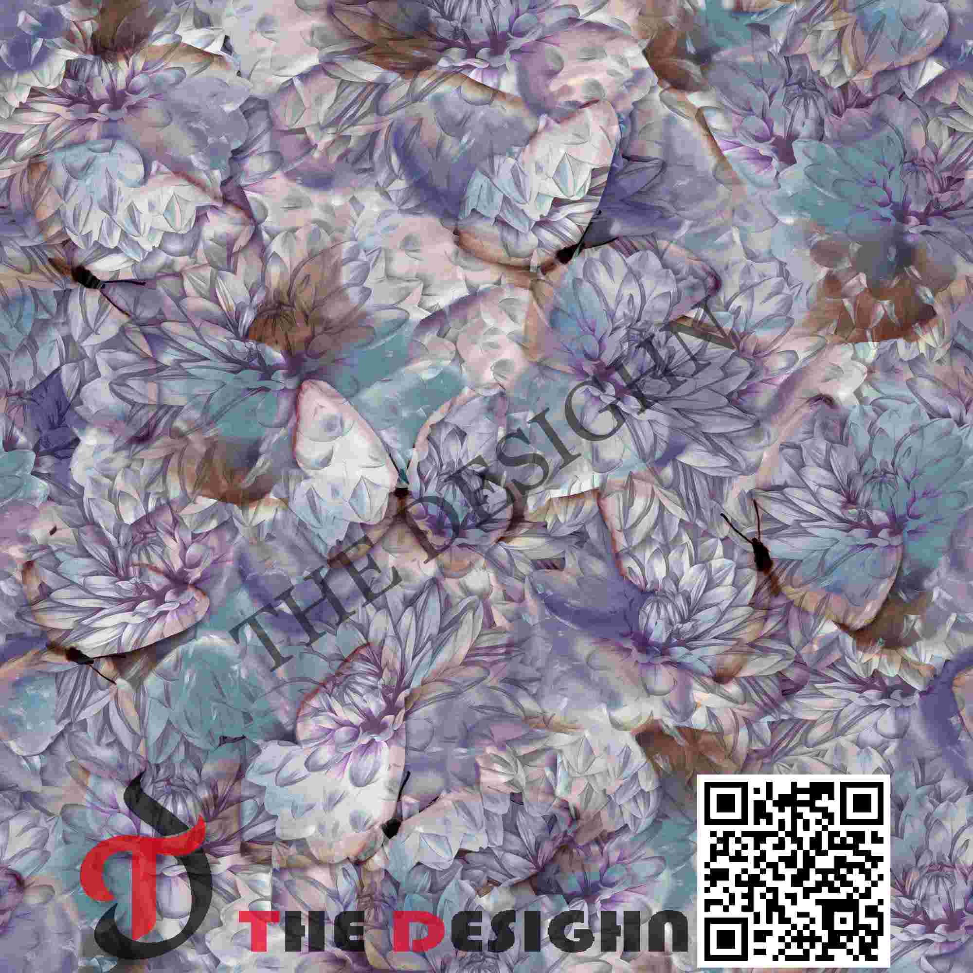 Pigment Dispersion (Vaporous): The design features “Atmospheric Tonal Clouding.” The teal and violet pigments are dispersed so thinly at the focal centers that they appear as an iridescent mist, providing a sense of immense soft-focus depth that makes the florals feel like they are floating in a luminous void.