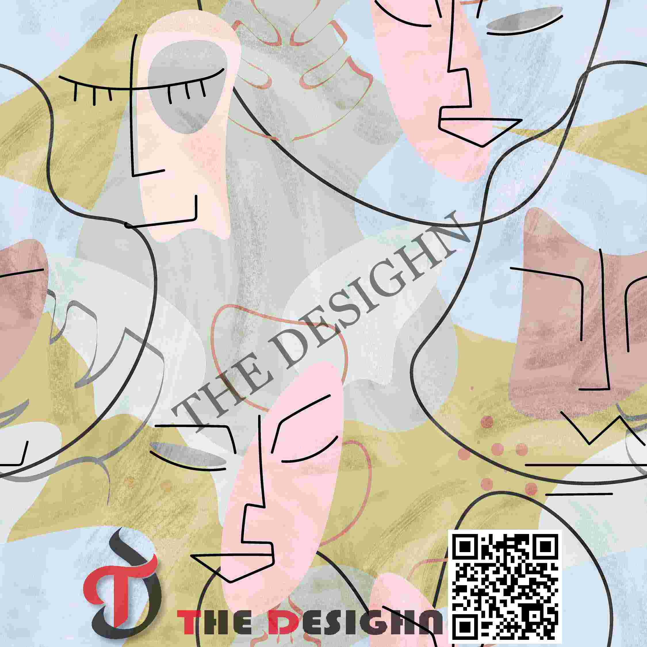 • The Look: The composition utilizes “Spectral Graphic Overlapping.” Set against a variegated field of muted sage, sky blue, and ochre, the design features charcoal-fine line drawings of faces with closed eyes. These lines weave through the color masses, creating a dreamlike, “frozen-in-motion” energy.