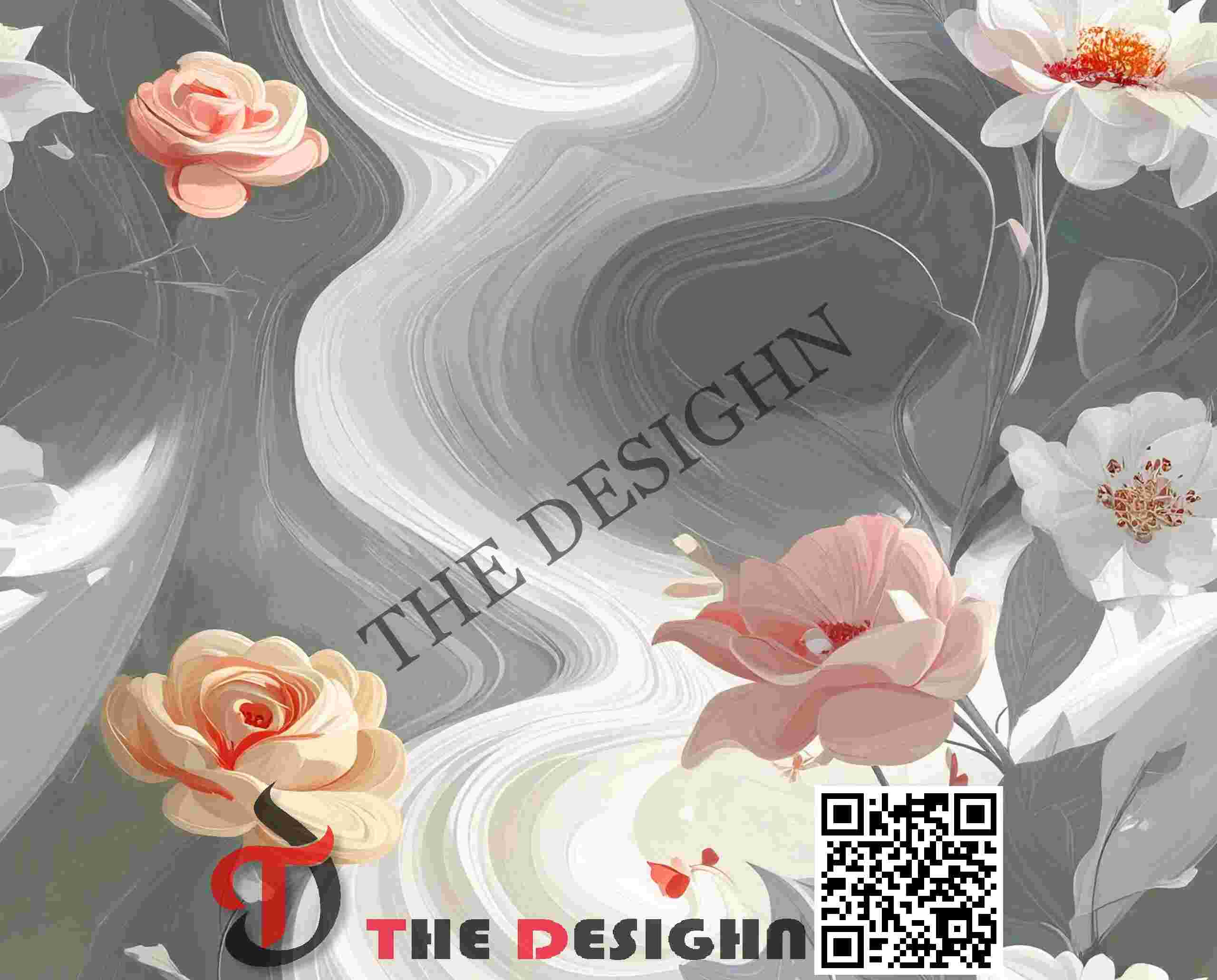 Edge Dispersion (Melted-to-Volumetric): The boundaries of the forms feature a “Flux Transition.” The background ribbons exhibit a melted, “blended” dispersion where they collide, while the flowers maintain a sharp, high-contrast dispersion at their perimeters to ensure they feel solid and volumetric against the moving ground.