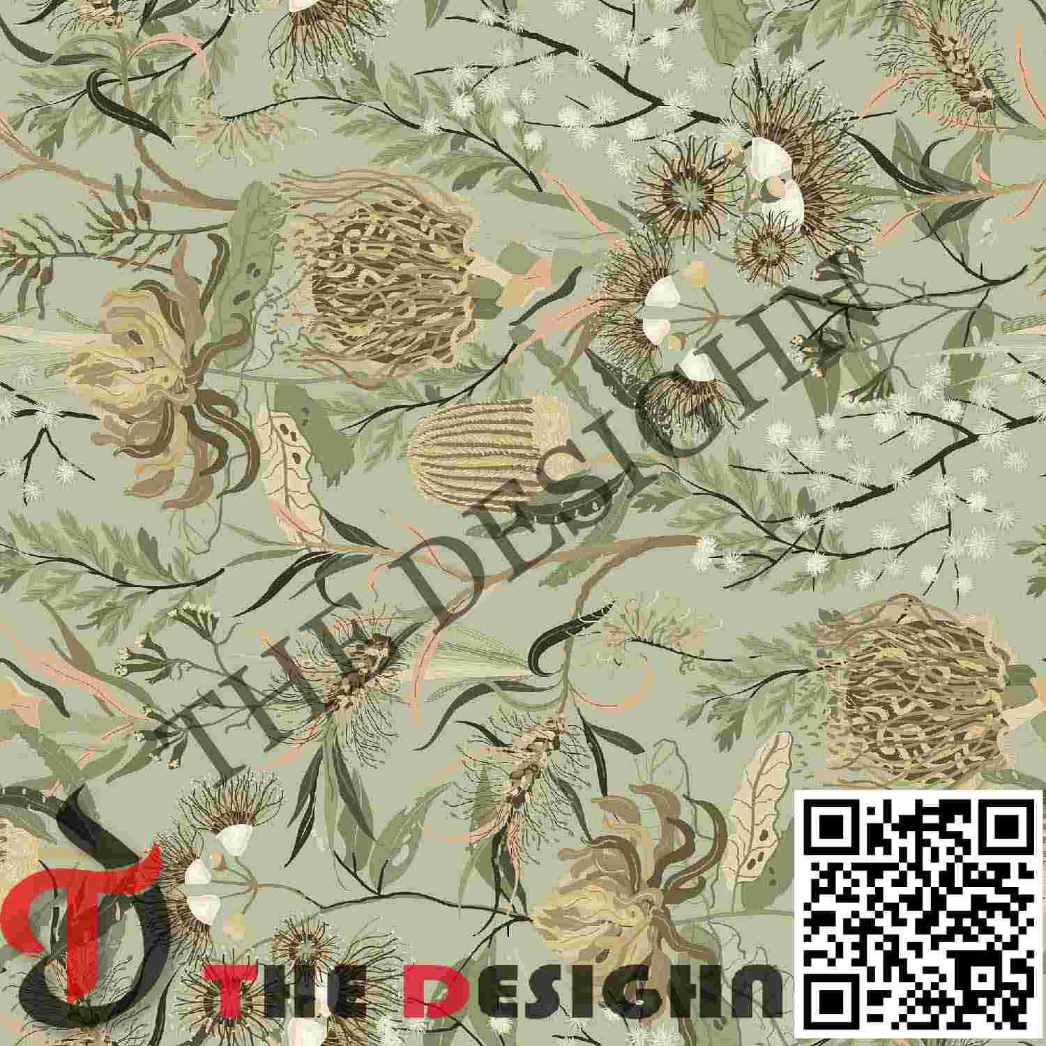• Visual Dispersion (Mechanical): The design exhibits “Internal Line-Grain Dispersion”. The pigments within the Banksia cones and Protea leaves are dispersed in fine, internal vertical and radial “slashes” that mimic the texture of Woodcut Printing or Lithography. This provides a tactile, “etched” surface quality.