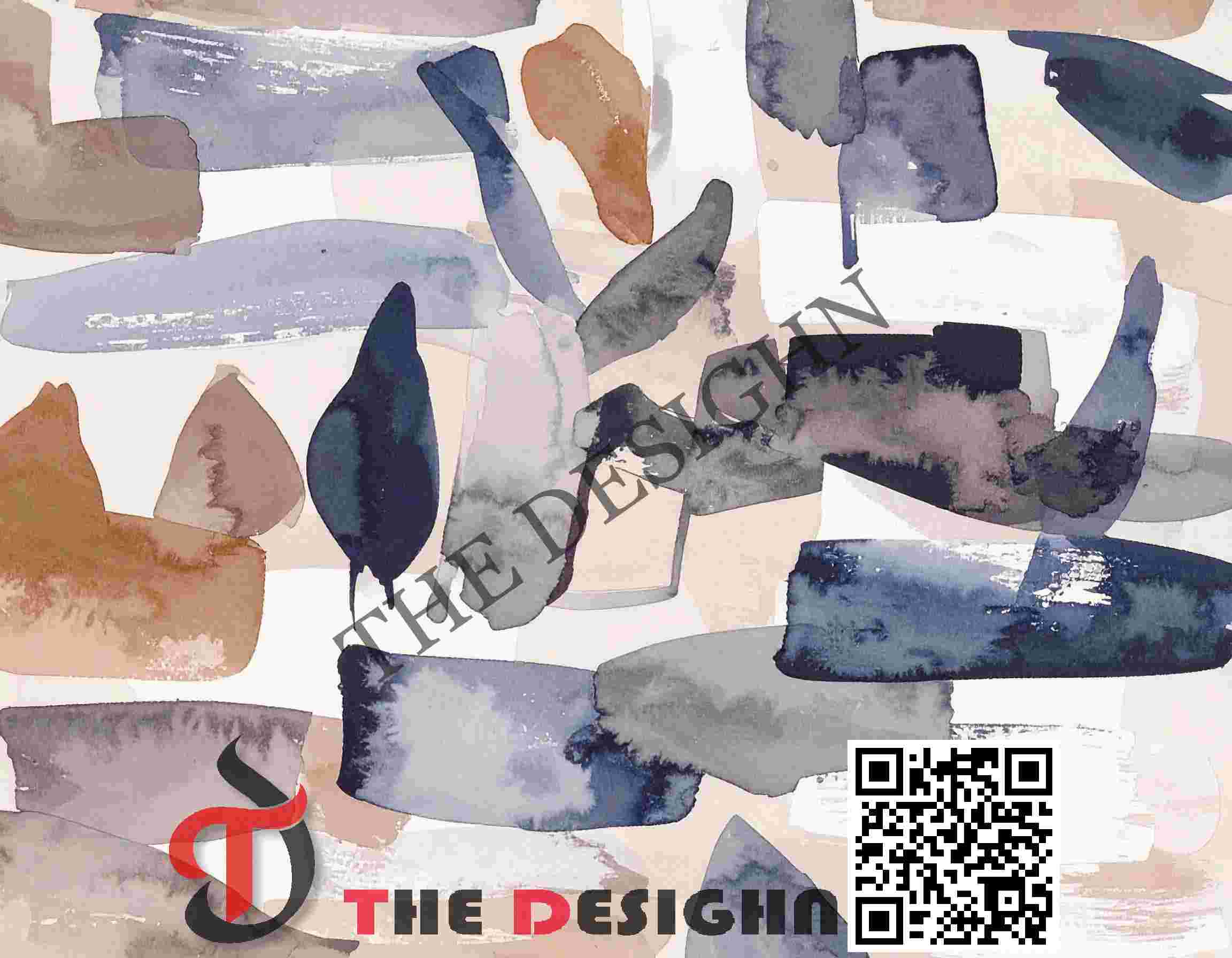 • Visual Dispersion (Mottled): The individual indigo and sienna blocks exhibit “Internal Wash Mottling.” The pigment is dispersed unevenly within each rectangular zone, suggesting a “wet-on-wet” technique where the color pools heavily at the margins while leaving a grainy, vaporous texture in the center.