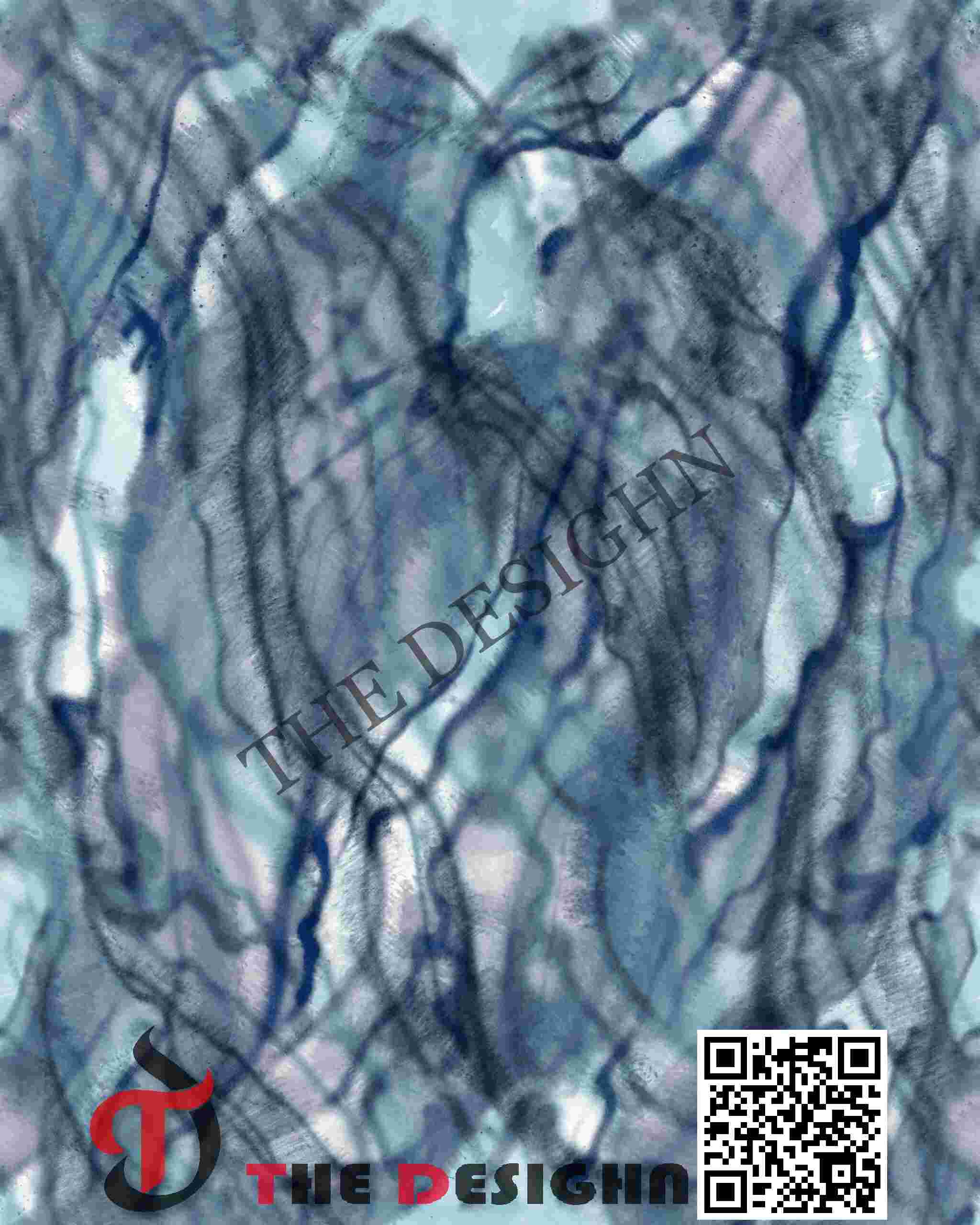 Visual Dispersion (Mottled): The primary background exhibits “Internal Wash Mottling”. The blue and grey pigments are dispersed in soft, uneven clusters that suggest a “wet-on-wet” watercolor technique, providing a tactile, organic surface quality across the entire field.