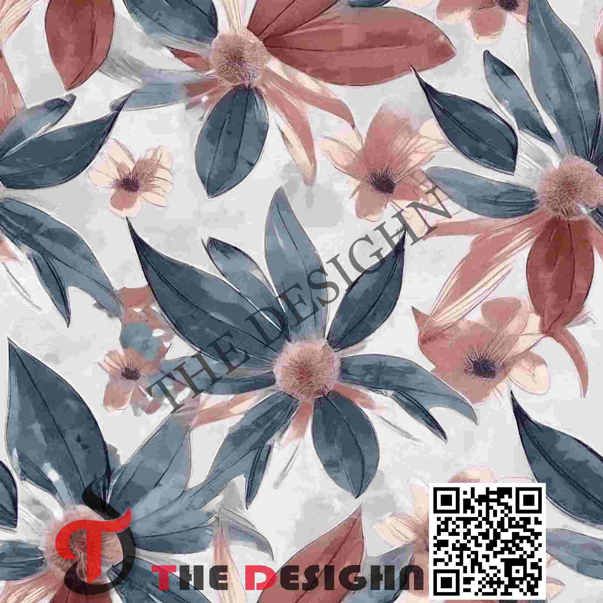 Visual Dispersion (Vaporous): The primary indigo and terracotta color zones exhibit “Vaporous Tonal Bleeding”. The pigments are dispersed in soft, feather-edged “currents” within the petals, providing a sense of immense soft-focus depth and internal luminosity.