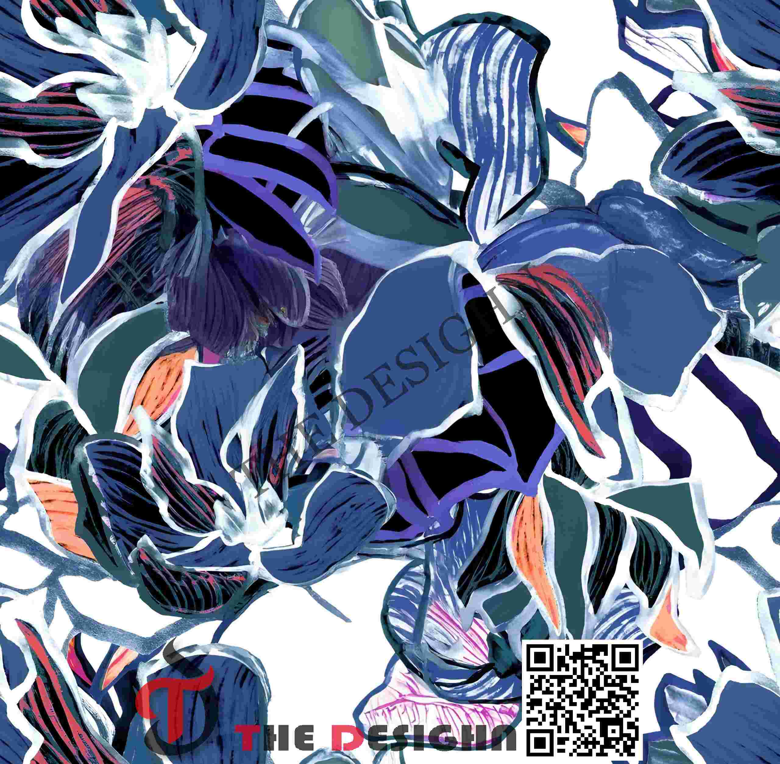 Pigment Dispersion (Zonal): The design features “Crystalline Linear Graduation.” Dispersion is strictly organized by “contour density.” The color exists in a state of high-density saturation within the dark-ink ribs and petal cores, immediately transitioning to zero-saturation at the crisp, white perimeters, creating a high-contrast, “vibrating” edge effect.