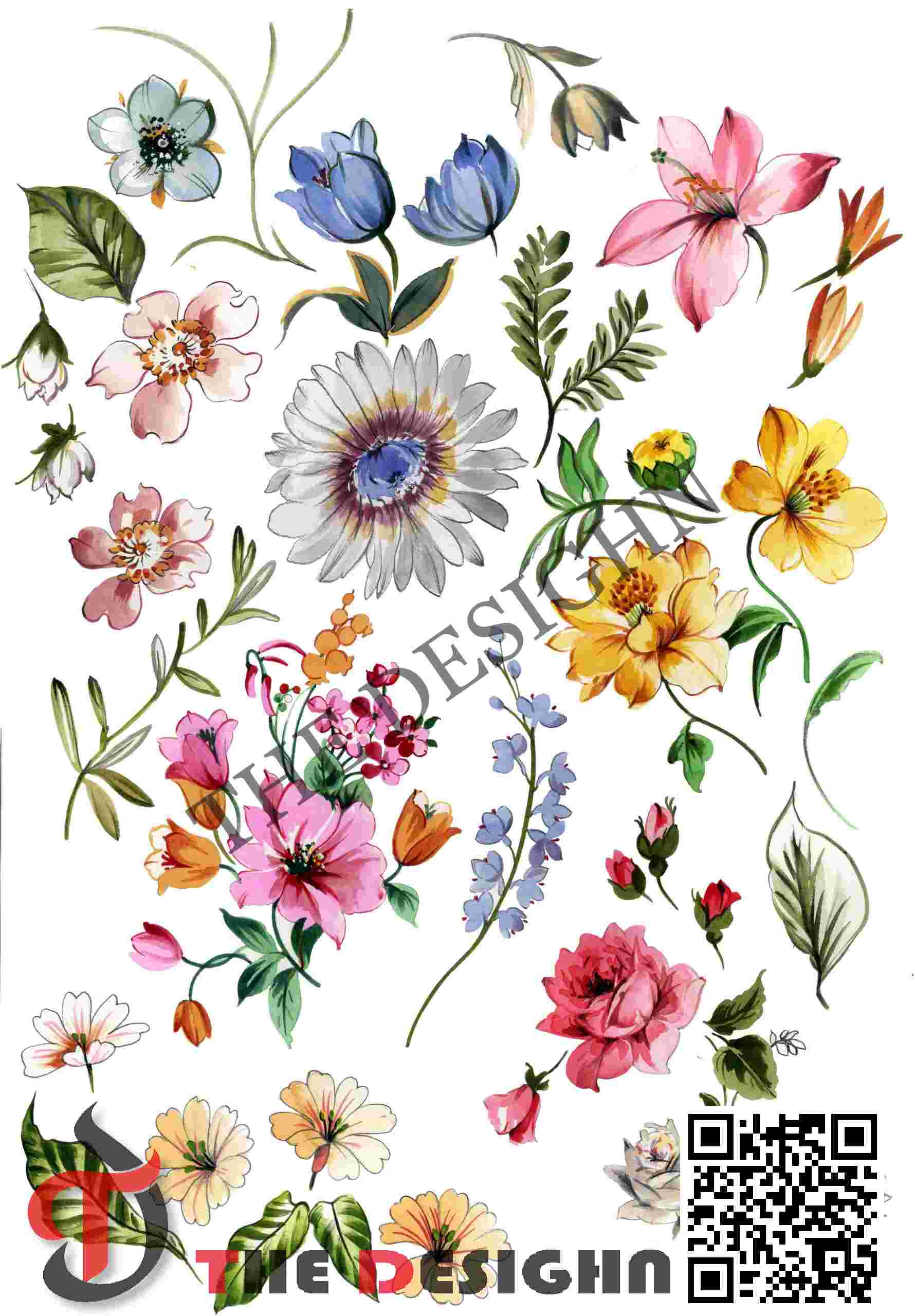 • Pigment Dispersion (Zonal): The design features “Viscous Zonal Graduation.” Dispersion is strictly organized by the “structural ribs” of the leaves and petals. The color exists in a state of high-density saturation at the base of each form (the “hearts” of the flowers), immediately transitioning to a lower density and higher transparency at the tips, mimicking the natural movement of liquid pigments meeting a drying mineral surface.