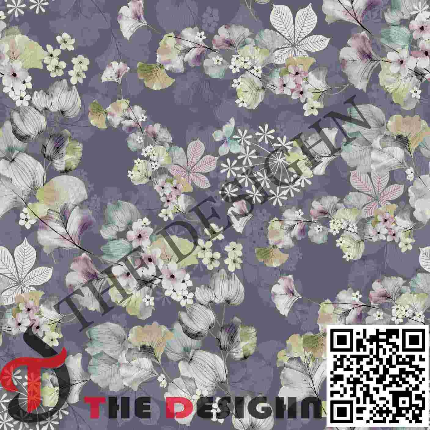 • Visual Dispersion (Mechanical): The design exhibits “Aqueous Pigment-Wash Dispersion”. The pigments within the larger leaves are dispersed in soft, granular washes and feathered gradients characteristic of Reactive Digital Textile Printing. This provides a tactile surface quality where the color feels light and airy, maintaining high clarity against the neutral gray background.