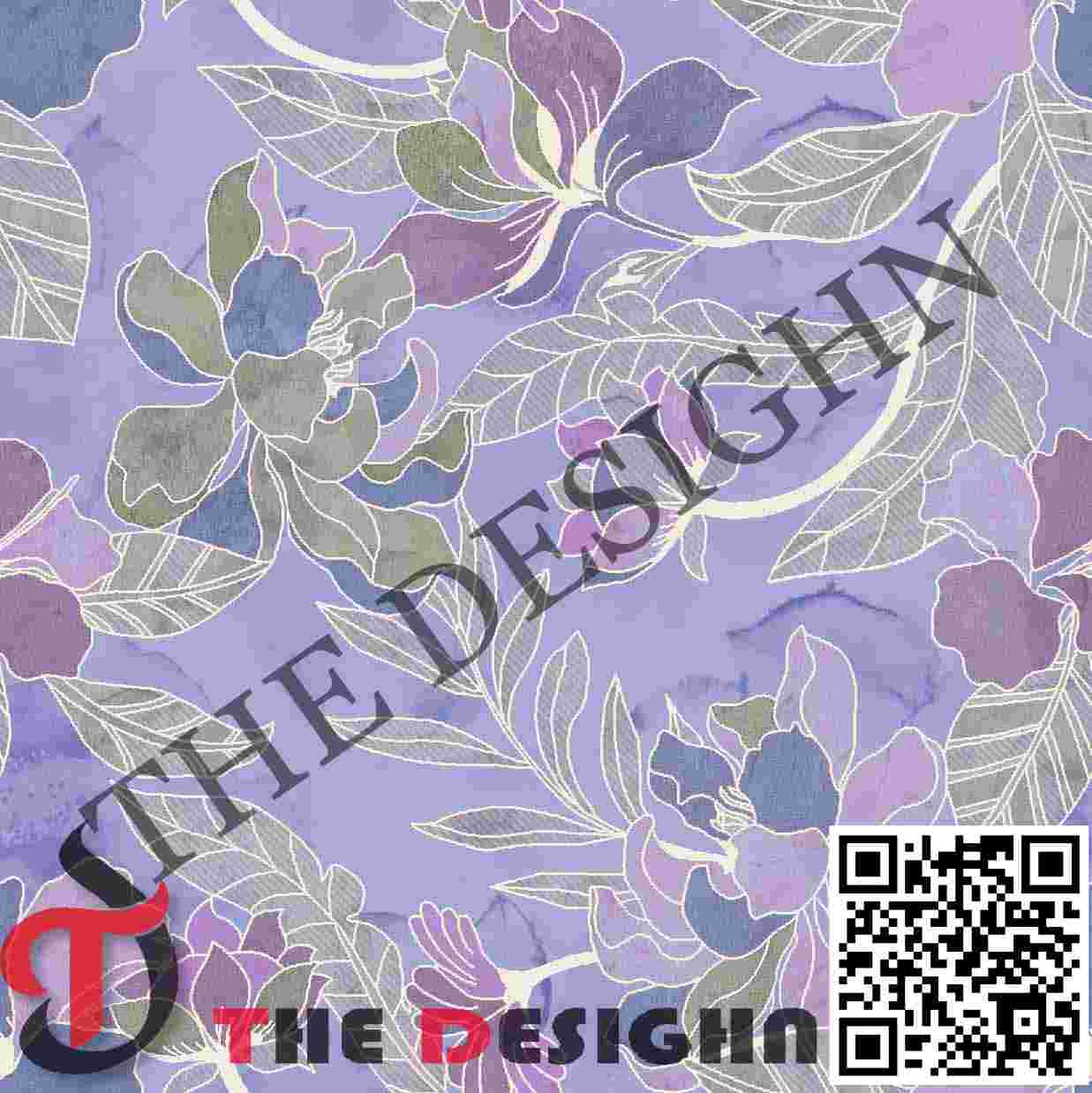 Pigment Dispersion (Zonal): The design features “Zonal Value Graduation”. Within the petals, the color is dispersed in varying “densities”—from high-density solid mineral tones to very light tints that allow the lavender ground to bleed through—creating a sense of physical relief and 3D volume.