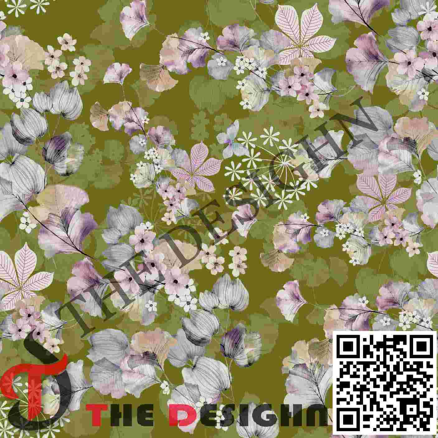 Visual Dispersion (Mechanical): The design exhibits “Aqueous Pigment-Wash Dispersion”. The pigments within the larger leaves are dispersed in soft, granular washes and feathered gradients characteristic of Reactive Digital Printing or Wet-on-Dry Watercolor. This provides a tactile surface quality where the color appears to have “wicked” into a light-colored cotton or silk base.