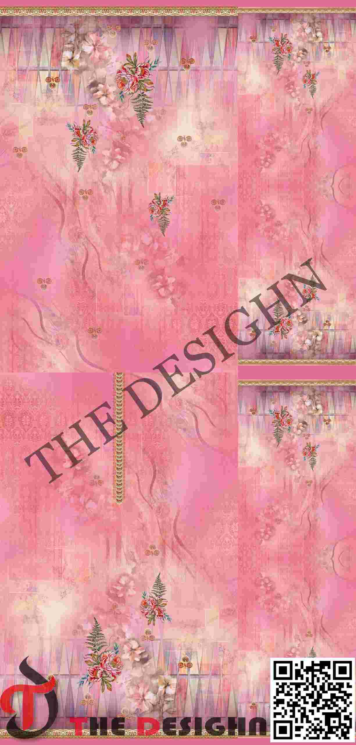 Architectural Borders (Daman): The top and bottom of the panels are anchored by sharp geometric chevron gradients. These triangular “mountain” peaks create a modern, structured frame that contrasts beautifully with the soft flow of the floral elements.