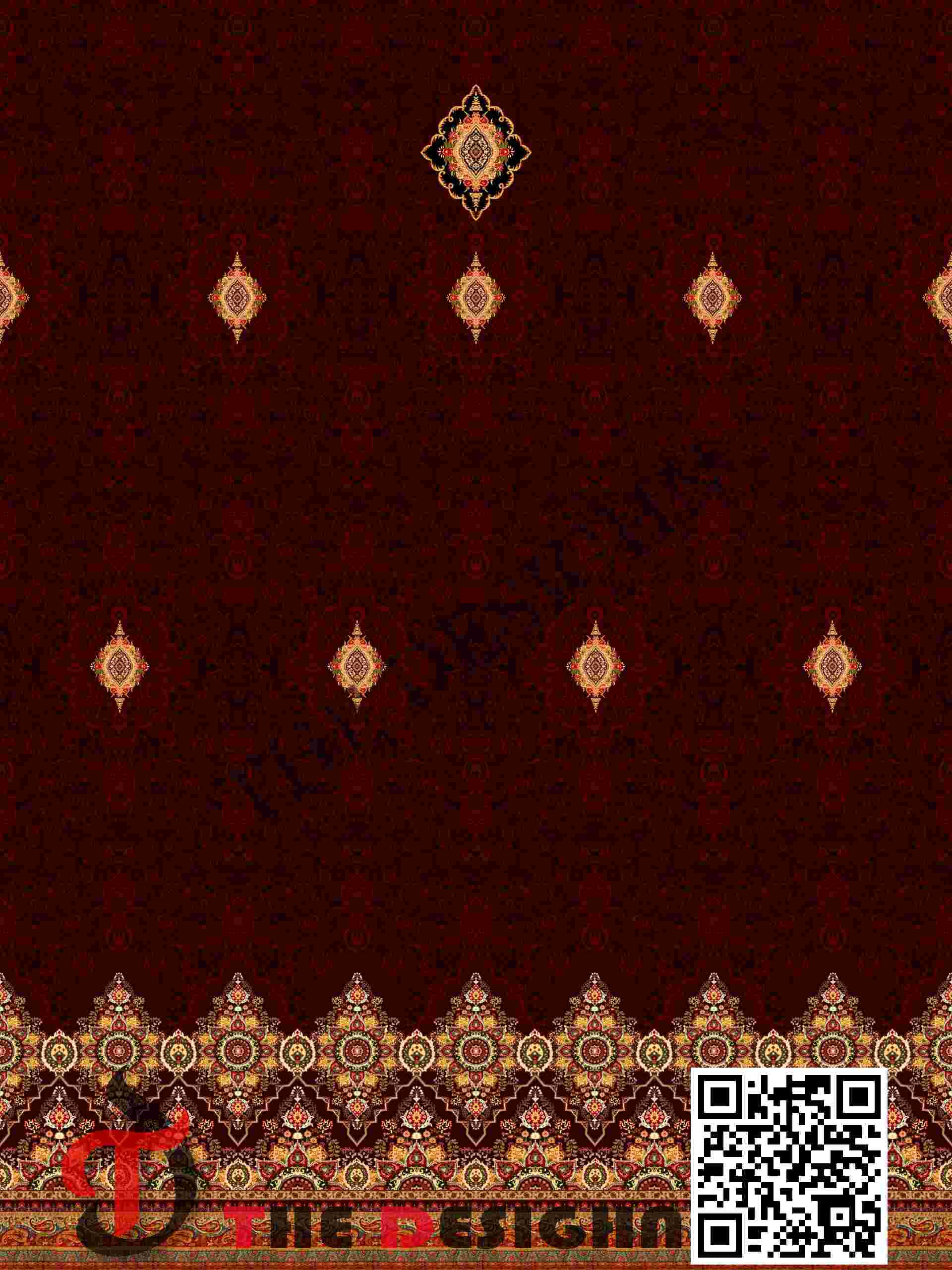 In the DUPATTA, the Saffron field utilizes a “gradient-wash” dispersion, appearing lighter at the center to draw the eye toward the primary Ruby medallion.