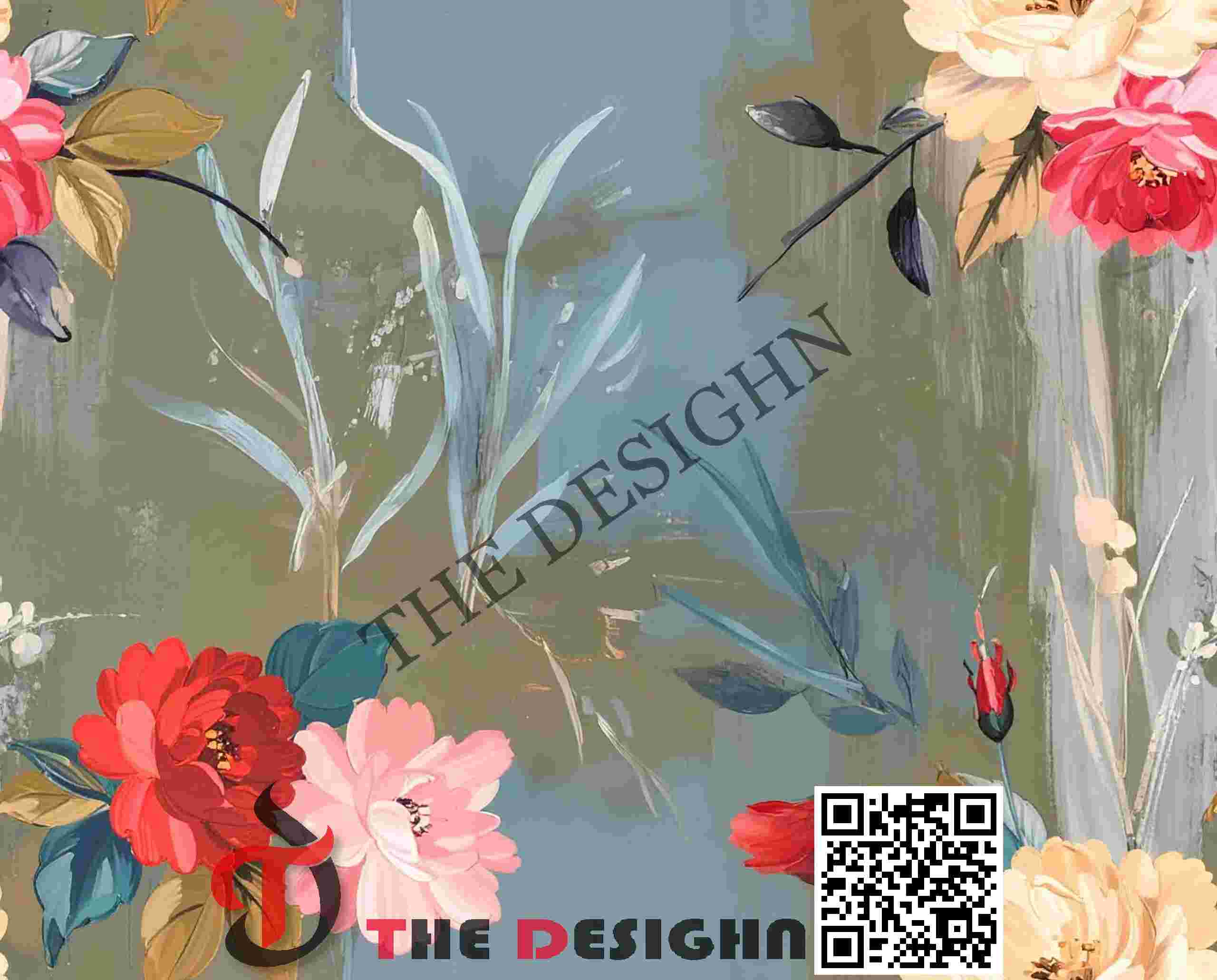 Edge Dispersion (Sharp-to-Ragged): The boundaries of the forms feature a “Hybrid Transition.” The primary petals maintain a sharp, high-contrast dispersion to define their shape, while the background and secondary foliage utilize a ragged, “dry-brush” dispersion to suggest they are integrated into the atmospheric texture of the wall.