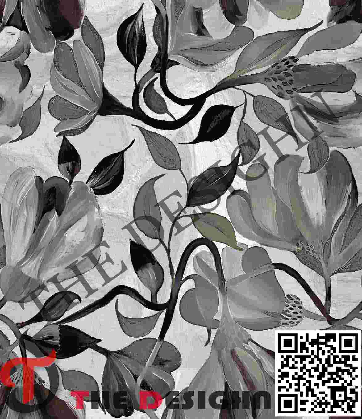 • Pigment Dispersion (Zonal): The design features “Zonal Grayscale Contrast”. Within the leaves and petals, the color is dispersed in varying “thicknesses”—from the high-density, opaque solid blacks to the thinner, semi-transparent gray washes—creating a sense of physical material depth and 3D relief.