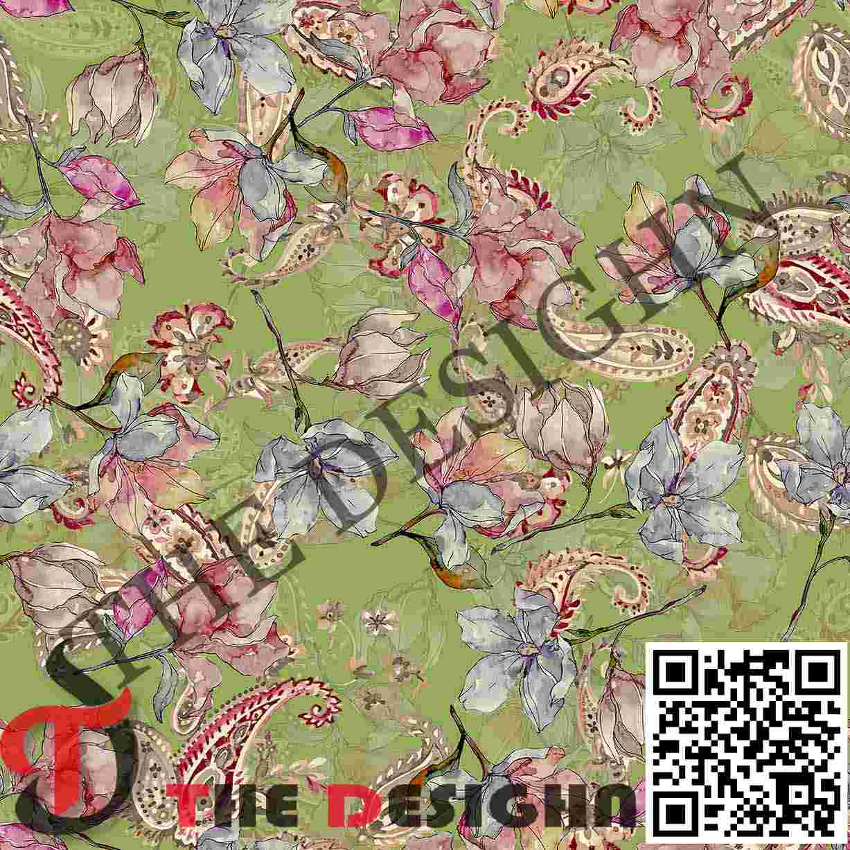Visual Dispersion (Mechanical): The design exhibits “Aqueous Petal-Bleeding Dispersion.” The pigments within the flowers are dispersed in soft, uneven washes characteristic of Wet-on-Dry Watercolor. This provides a tactile surface quality where the color appears to have “settled” into the center of the petals while thinning out toward the edges.
