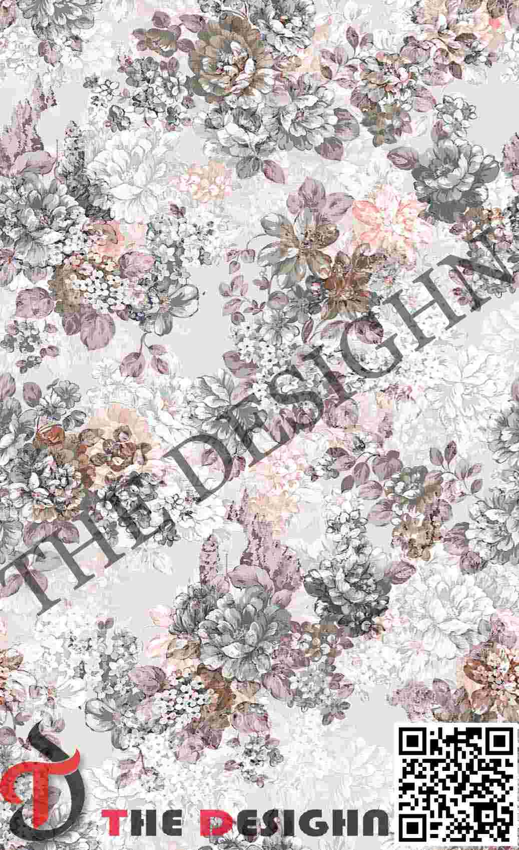 Pigment Dispersion (Zonal): The design features “Zonal Opacity Graduation”. Within the background, the color is dispersed in extremely low-density washes (less than 15% opacity), creating “ghosted” floral forms. In contrast, the foreground clusters feature high-density, opaque dispersion with deep umber shadows, creating a sense of 3D relief against the neutral ground.