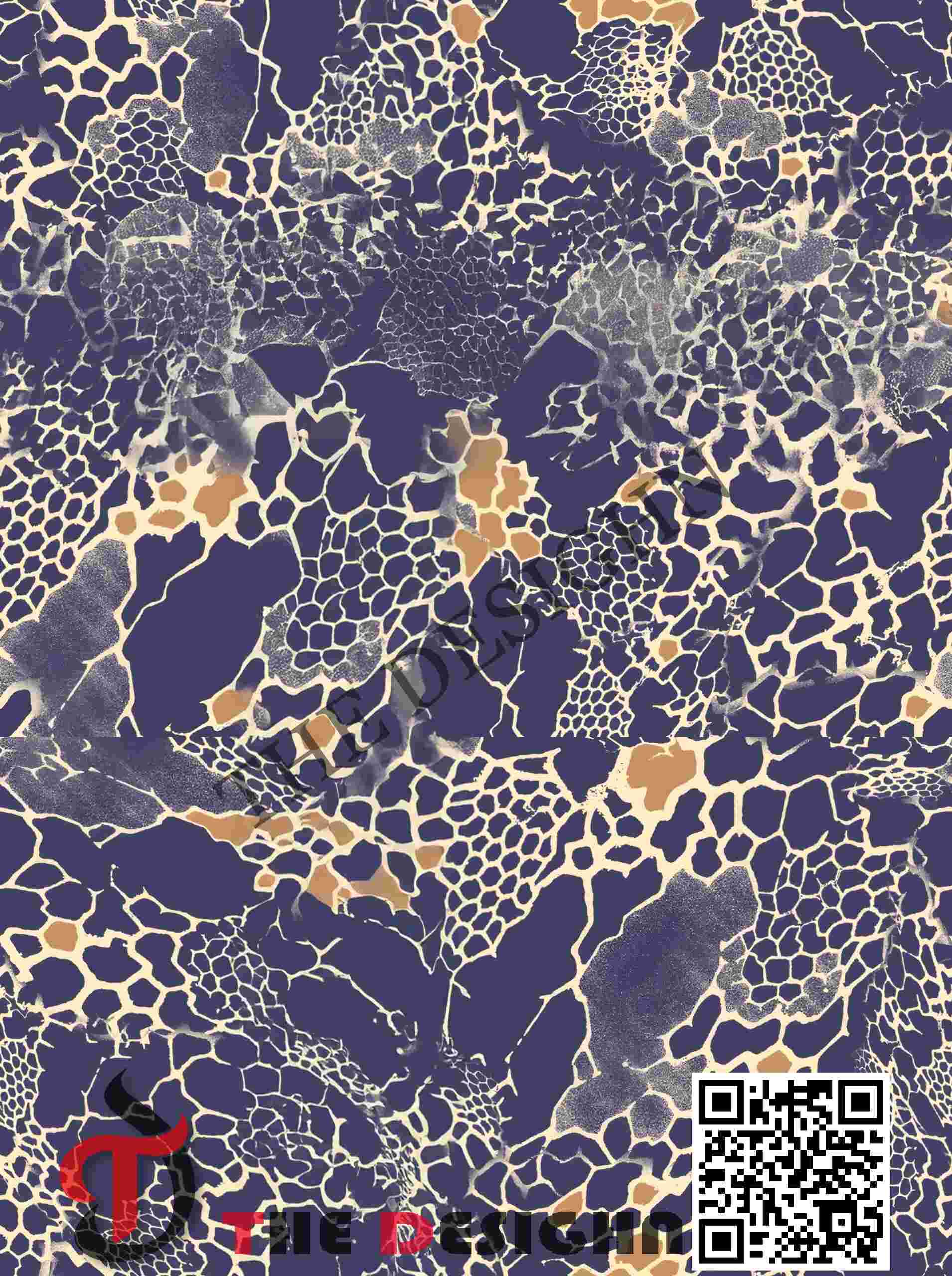 Pigment Dispersion (Zonal): The design features “Crystalline Linear Graduation.” Dispersion is strictly organized by “structural density.” The color exists in a state of high-density saturation within the dark-navy islands, immediately transitioning to zero-saturation at the crisp, white cellular boundaries, creating a high-contrast, “vibrating” edge effect.