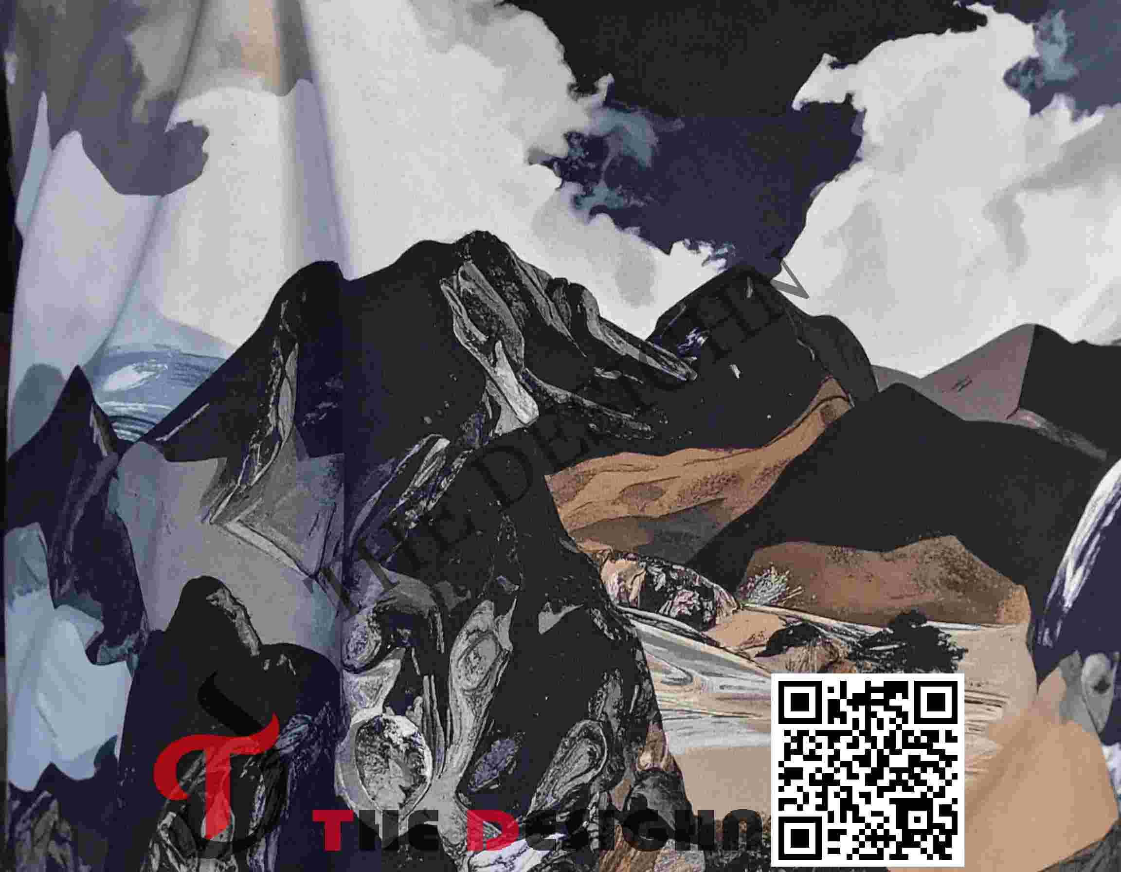 Edge Dispersion (Sharp-to-Vaporous): The boundaries of the main forms feature “Tactile Ridge Dispersion.” Most elements maintain a crisp, physical edge where the dark paint meets the sky, while the “cloud” gestures exhibit “Vaporous Boundary Diffusion” to provide secondary depth.