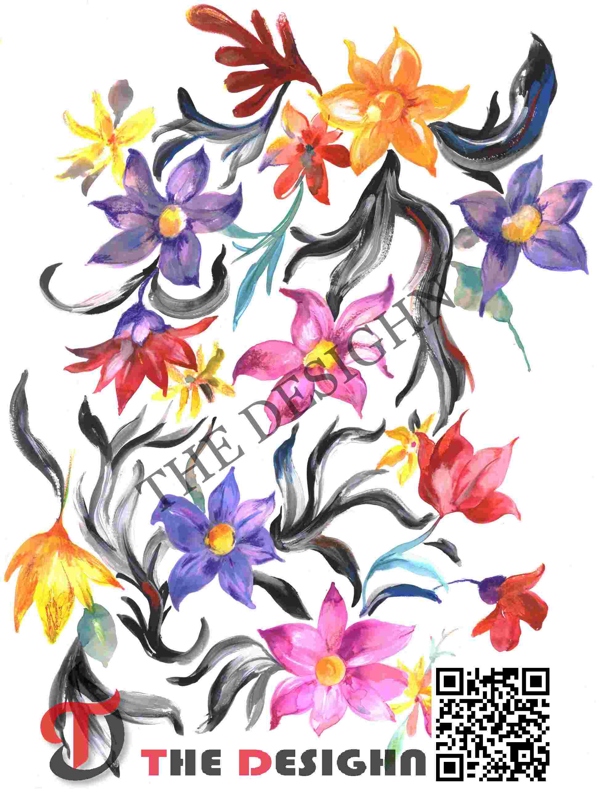 Edge Dispersion (Frayed-to-Fluid): The boundaries of the forms feature a “Kinetic Transition.” The edges of the obsidian stems are frayed and irregular, exhibiting “speed-dispersion,” while the petals maintain a more fluid, aqueous perimeter. This ensures the design feels urgently hand-rendered and physically integrated.