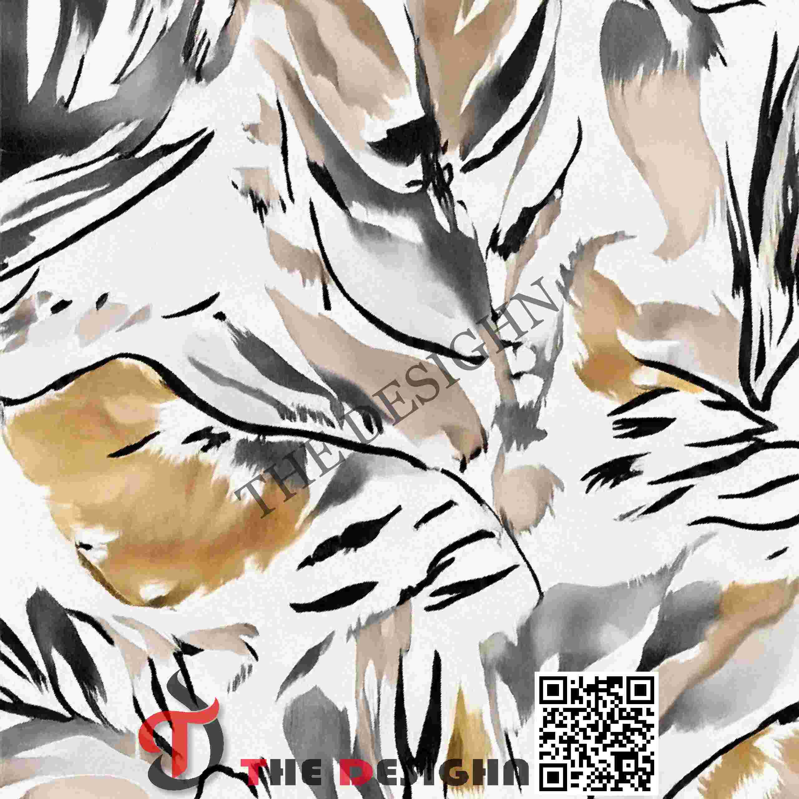 Pigment Dispersion (Fibrillated): The design features “Internal Kinetic Fibrillation”. Saturated charcoal pigments are dispersed in dense, high-contrast “impact zones” (the stripes), immediately surrounded by fine, “penciled” drag-lines that mimic the texture of fur or a rapid brush-stroke.